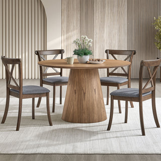 5-Piece Black Graywash Round Dining Set Table Chairs Rustic Gray Finish Dining Room Wooden Furniture