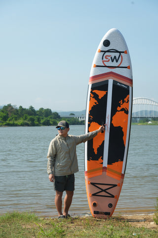 Experience the thrill of paddleboarding with this Inflatable Stand Up Paddle Board, measuring 9.9'x33"x5". Designed for both beginners and seasoned paddlers, this board offers a perfect balance of stability, performance, and portability. Made with high-quality materials, the 5-inch thick board provides excellent buoyancy, ensuring a smooth ride on calm waters or light waves.