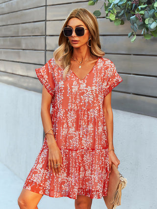 Frilly edges add to the sweetness of this floral-print shift dress made from a wear-everywhere, stretchy knit.