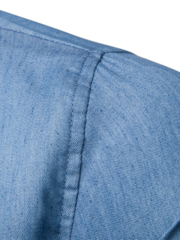 Make a modern statement with this unique men's long sleeve shirt. This isn't your average casual button-down—it features a stylish patchwork leather detail on the pocket, giving it an edgy and fashion-forward look. The mix of a classic fabric with a premium leather accent creates a sophisticated and eye-catching design.
