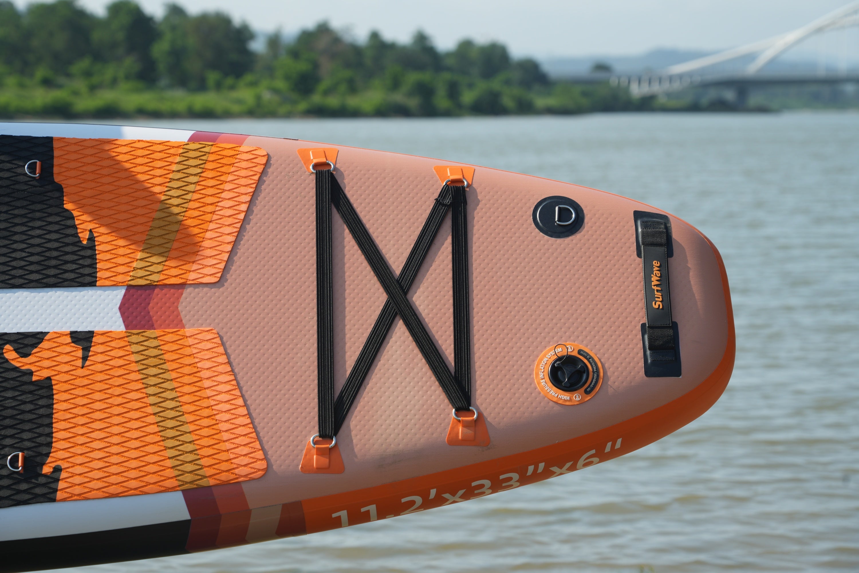 Constructed from durable military-grade PVC with drop-stitch technology, the board is lightweight yet incredibly rigid when inflated. Its non-slip EVA deck pad ensures safety and comfort, while the 6-inch thickness adds extra buoyancy for smooth gliding on water.