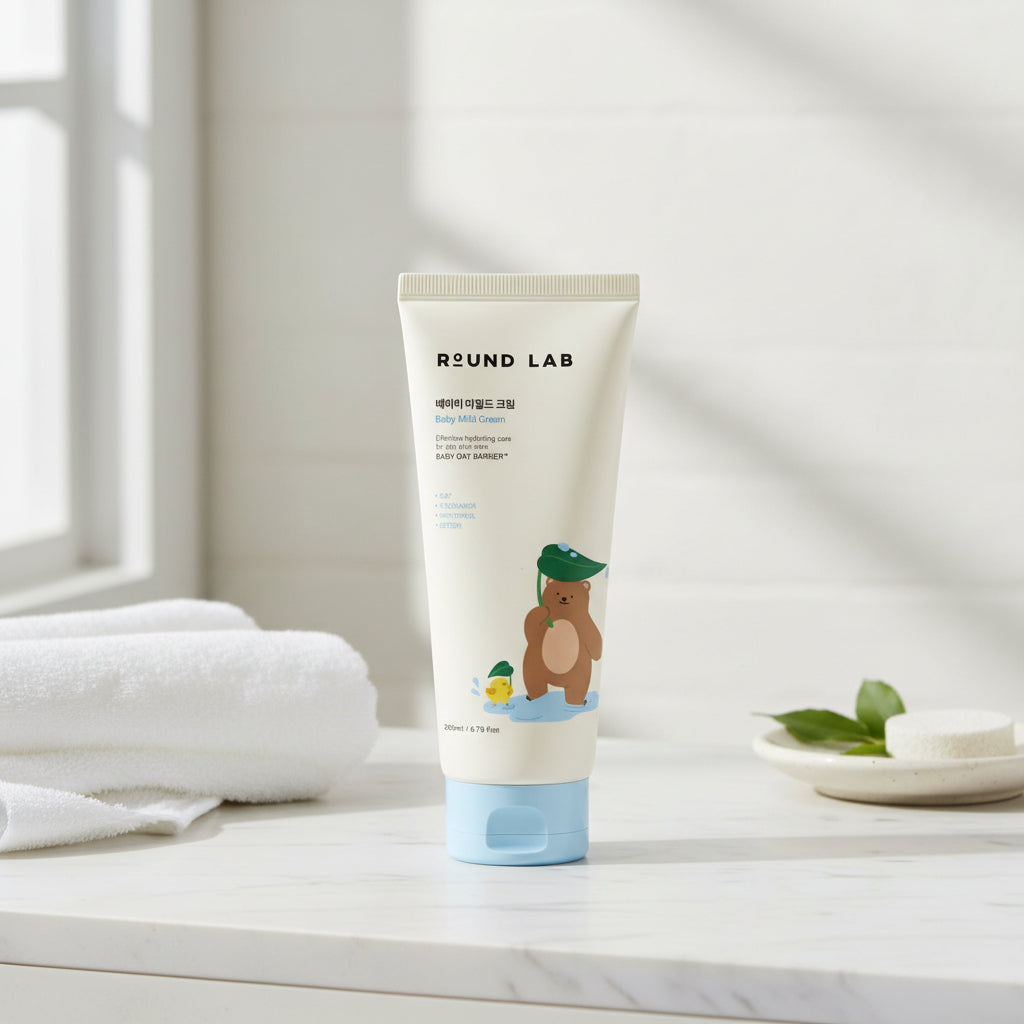 Provide the gentlest care for your little one or your own sensitive skin with the Round Lab Baby Mild Cream (200ml). This advanced K-Beauty cream is specially formulated to be Hypoallergenic and pH-Balanced, ensuring maximum safety and comfort, and is Pediatrician Tested. The rich yet fast-absorbing texture delivers intensive, non-sticky moisture, instantly soothing dryness and irritation associated with diaper rash, eczema, or environmental factors. Enriched with skin-strengthening ingredients like Ceramide, it works to fortify the delicate Skin Barrier and prevent moisture loss. Perfect for daily use on both Face and Body for babies, toddlers, and adults with extra-sensitive skin. The generous 200ml size makes it an ideal, long-lasting staple for the entire family.
