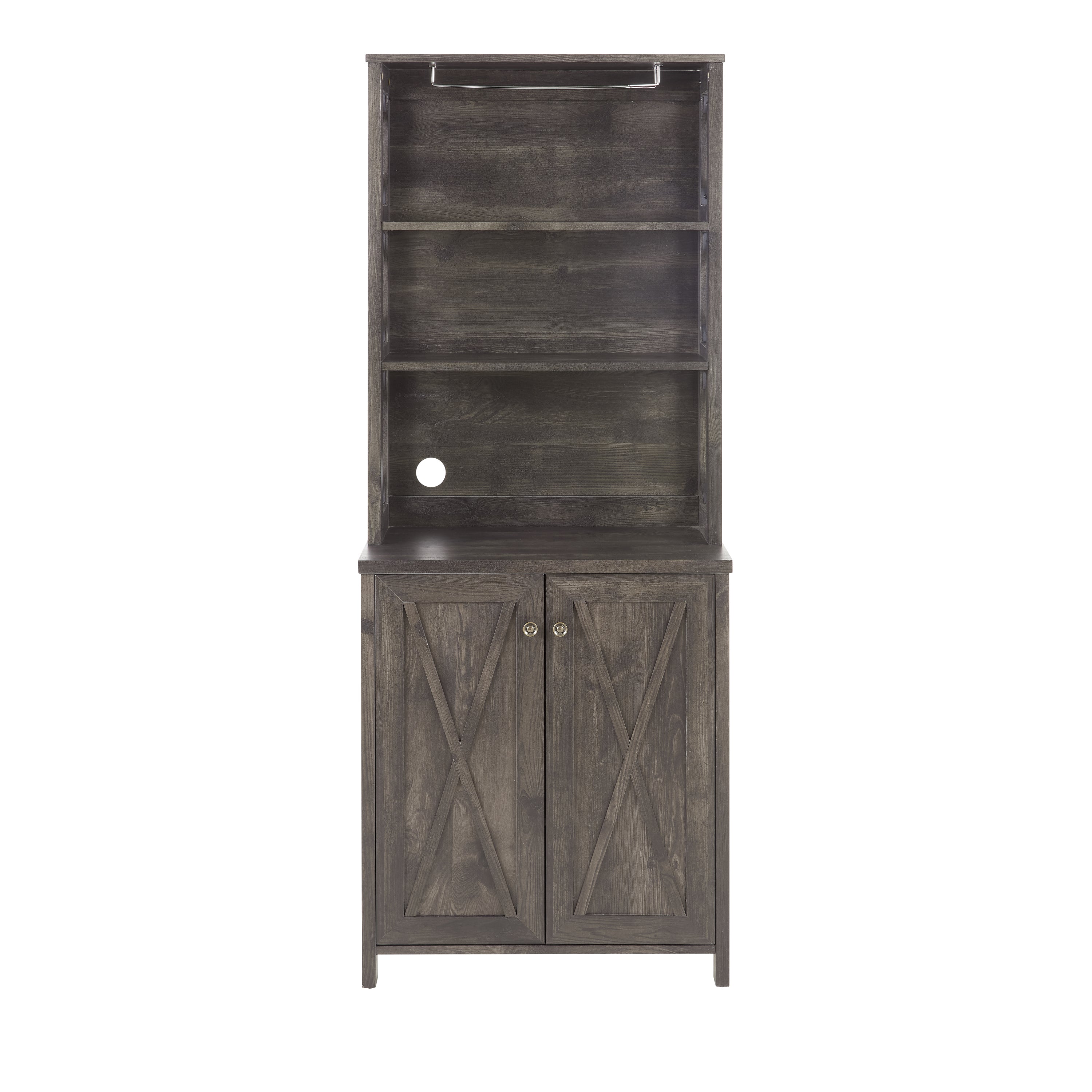 Coffee Bar Cabinet with Microwave Stand & Metal Frame – Side Home Source Bar Cabinet with Hollow-Out Barn Design – Charcoal Gray – 26.77" x 15.75" x 67.32"
