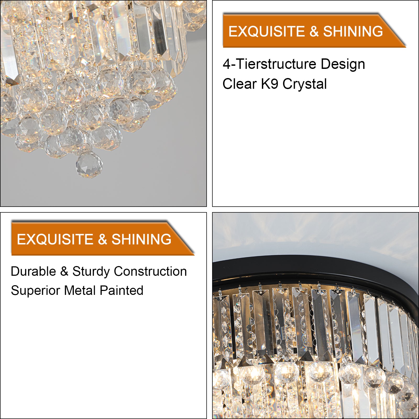 • Elegant and classic design -The crystal chandelier comes with a high-quality metal frame and K9 top-notch crystal.