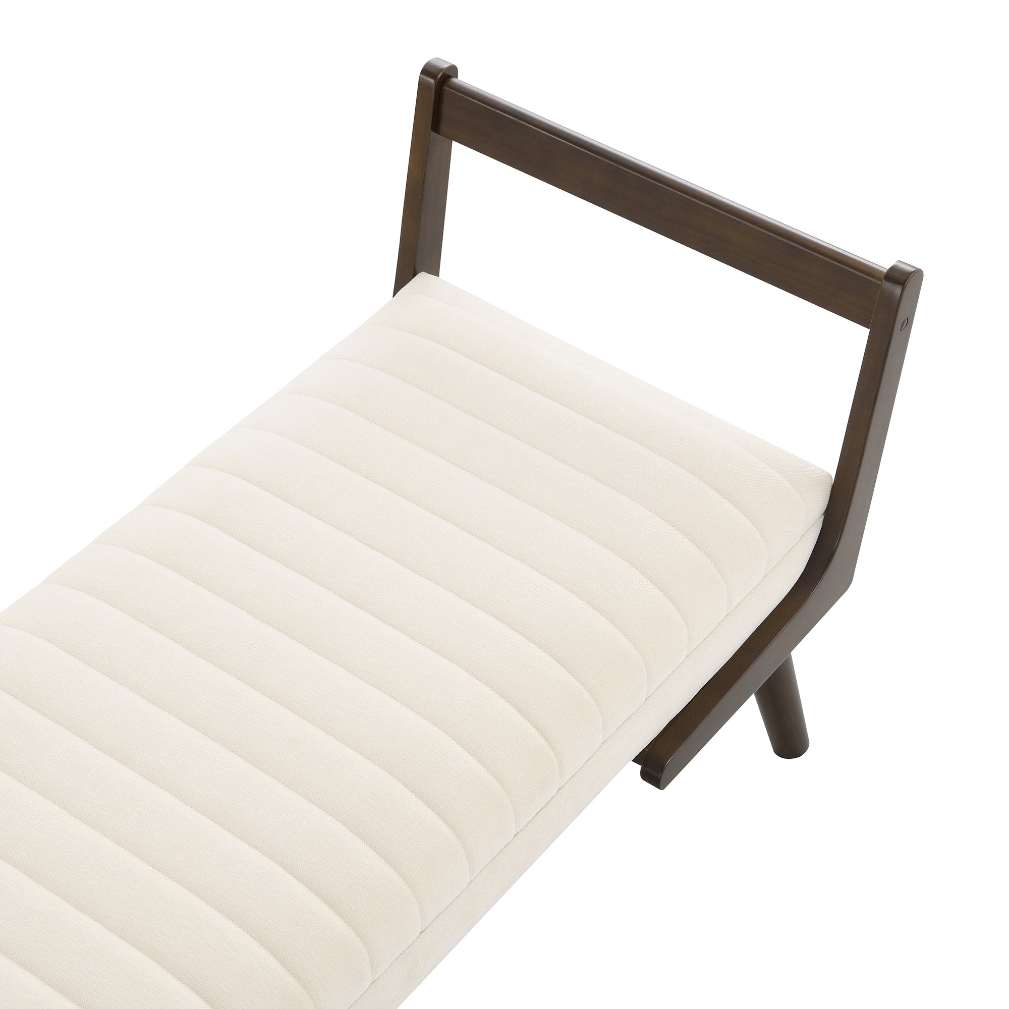 52" Mid-Century Modern Bench | Channeled Upholstered Chenille Footrest Stool (Beige/Walnut)