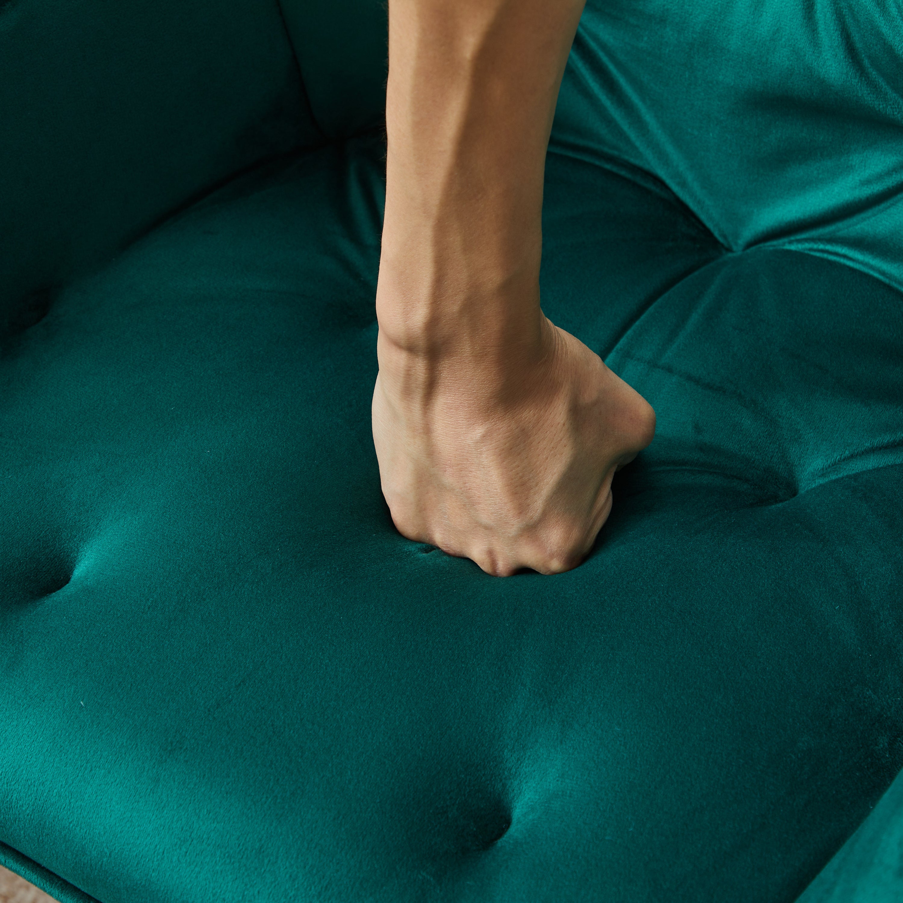 - Elegant velvet upholstery in a bold green color for a stylish, modern look