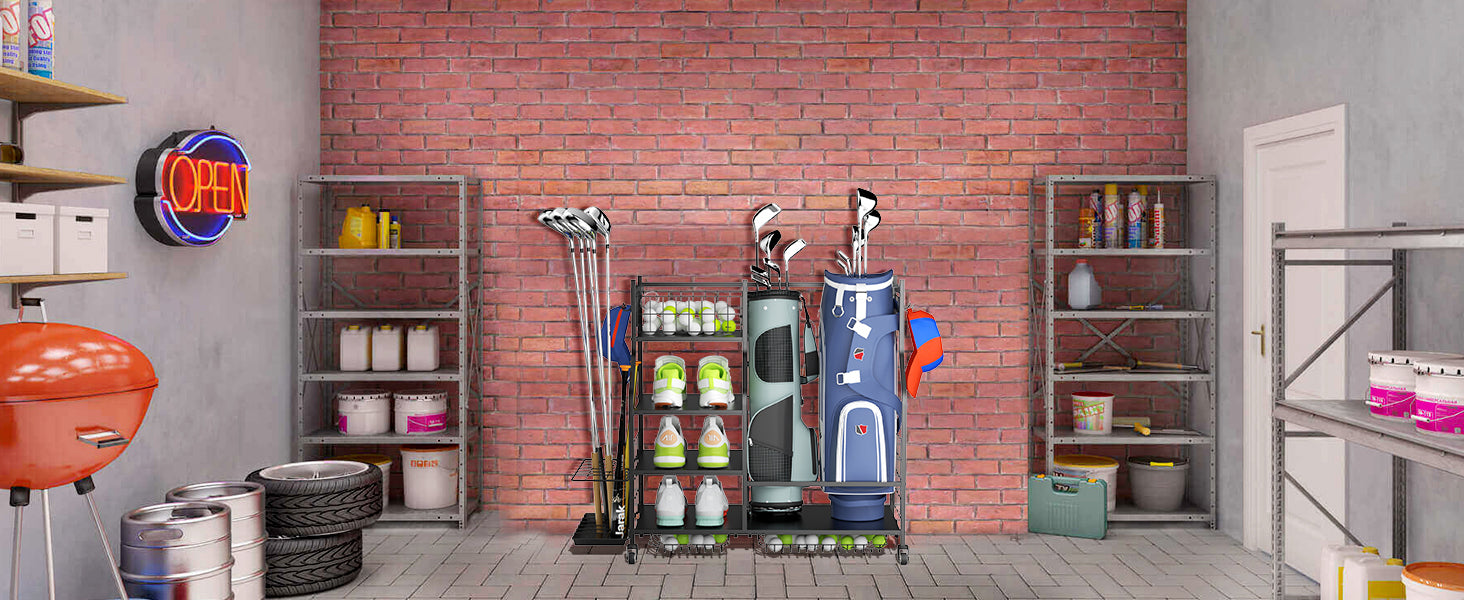Keep your golf gear organized with the Golf Bag Storage Garage Organizer. This durable golf club bag storage rack is designed to hold multiple golf bags, clubs, and accessories, keeping your space neat and tidy. Built with a sturdy metal frame and extra storage shelves, it provides ample room for shoes, balls, and training equipment. Perfect for garages, sheds, or basements, this heavy-duty golf organizer ensures your gear stays secure, accessible, and ready for your next game. A must-have for any golfer looking to maintain an organized and professional setup at home.