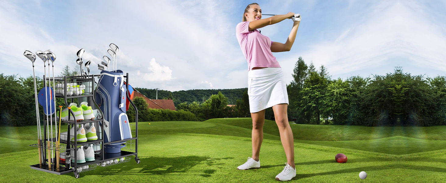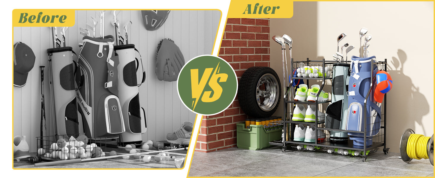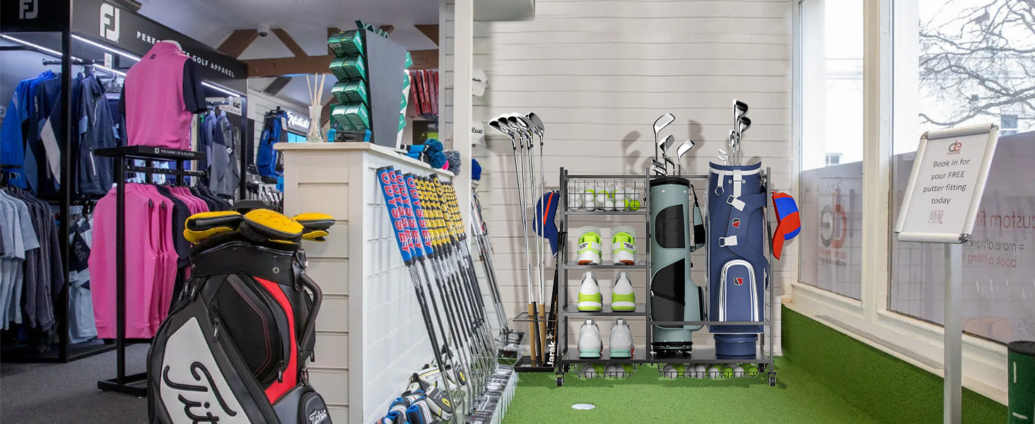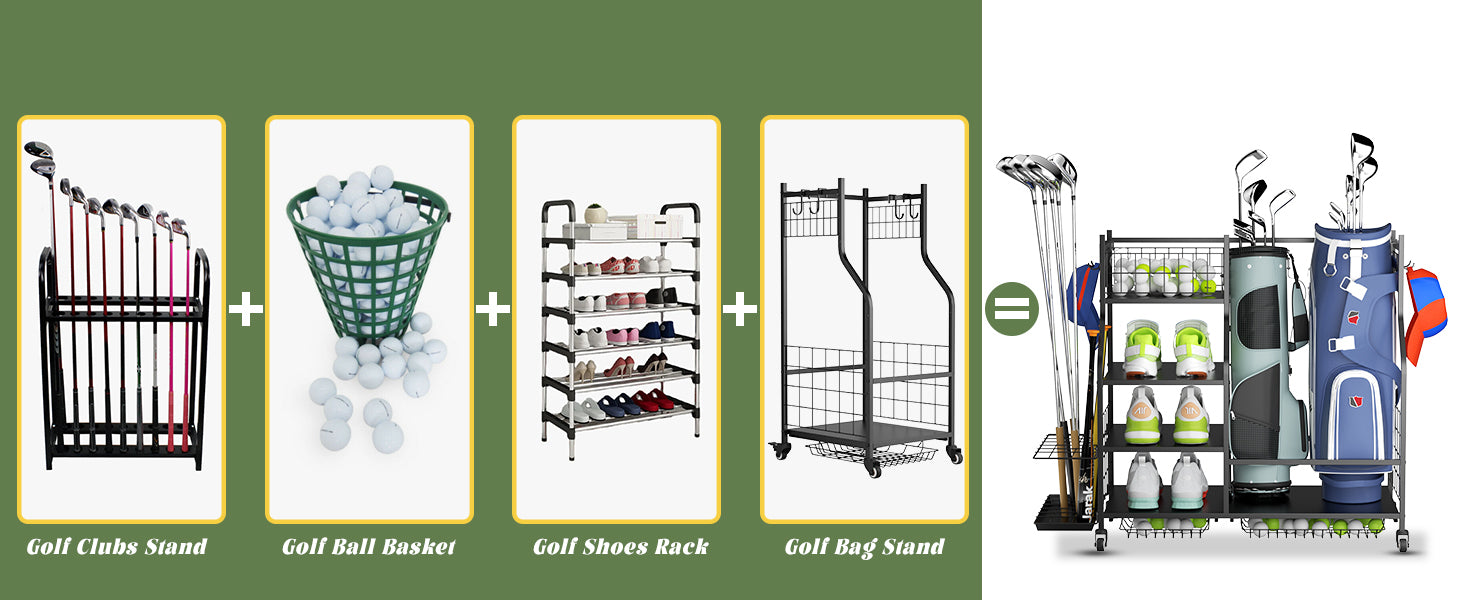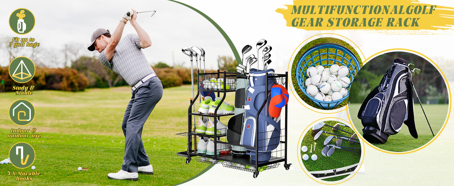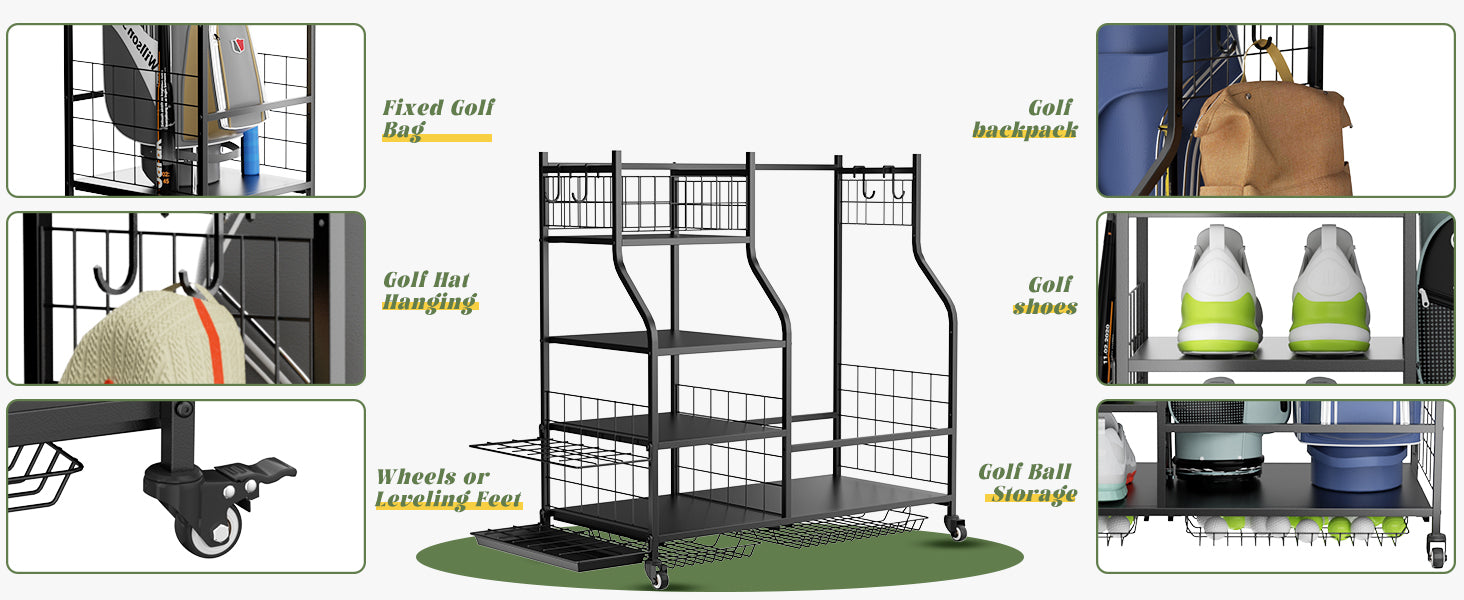 - Dedicated Club Storage Rack: Includes a separate golf club display stand, capable of holding up to 21 golf clubs, golf flags, or other sports gear like baseball bats and hockey sticks for added versatility.