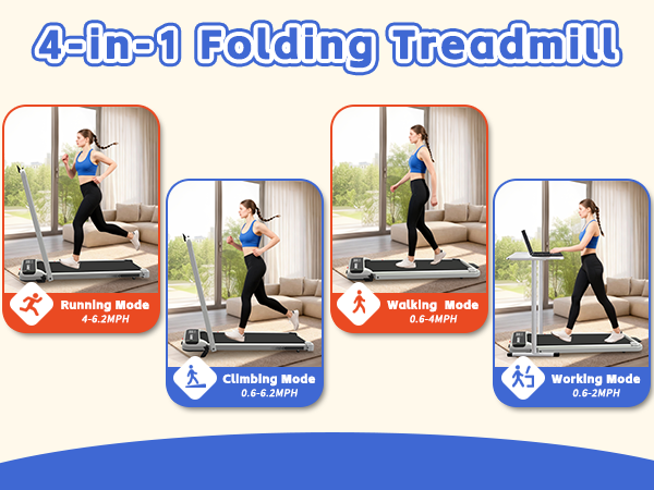 - 【Treadmill With 0.6-6.2 MPH】: This portable treadmill has a speed range of 0.6-6.2MPH while keeping the noise below 60 decibels to avoid disturbing others