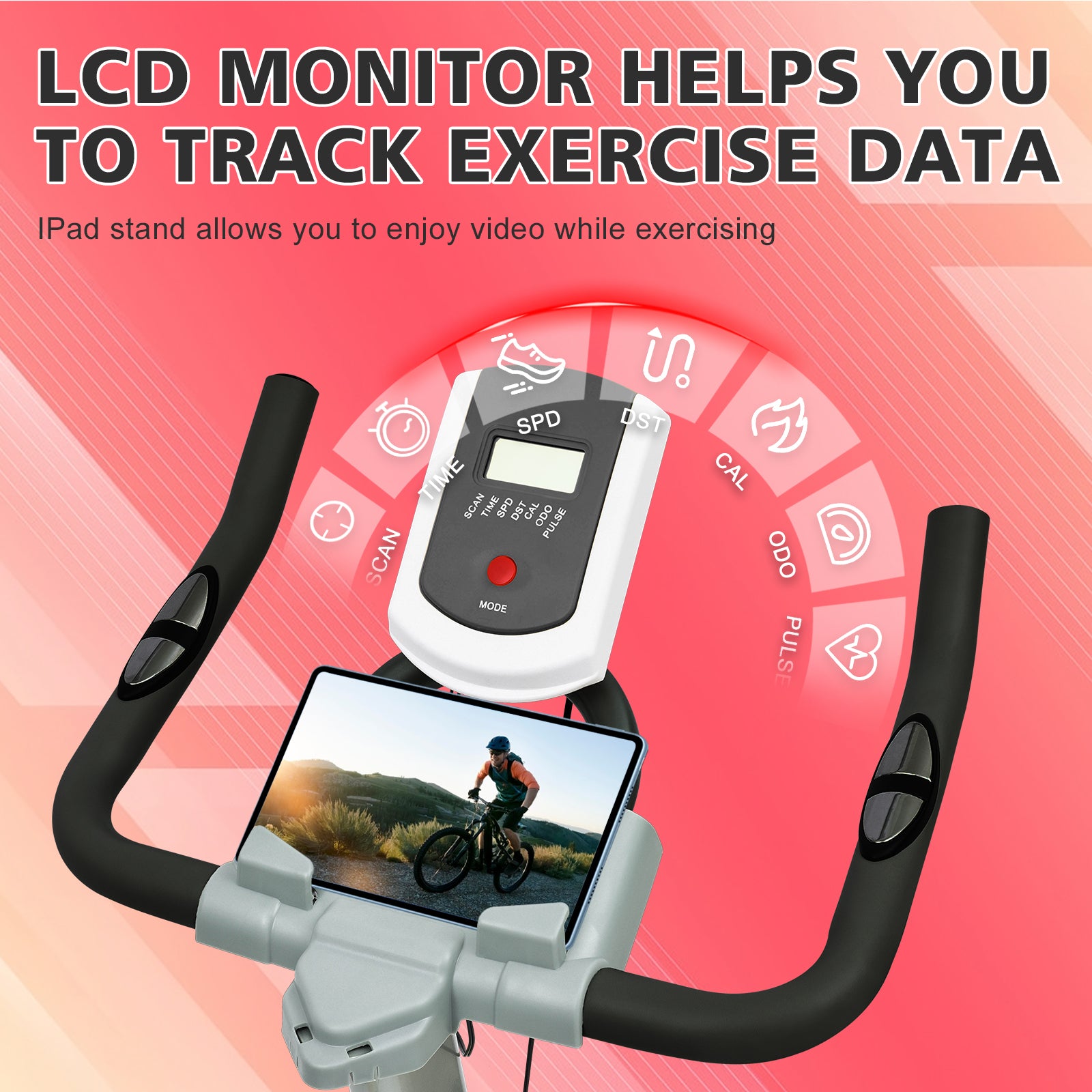 • 【STURDY AND DURABLE】 The exercise bike's heavy-duty steel frame and 30-pound flywheel ensure stability while riding. The belt drive system provides a smooth, quiet ride that won't disturb other members of the room.