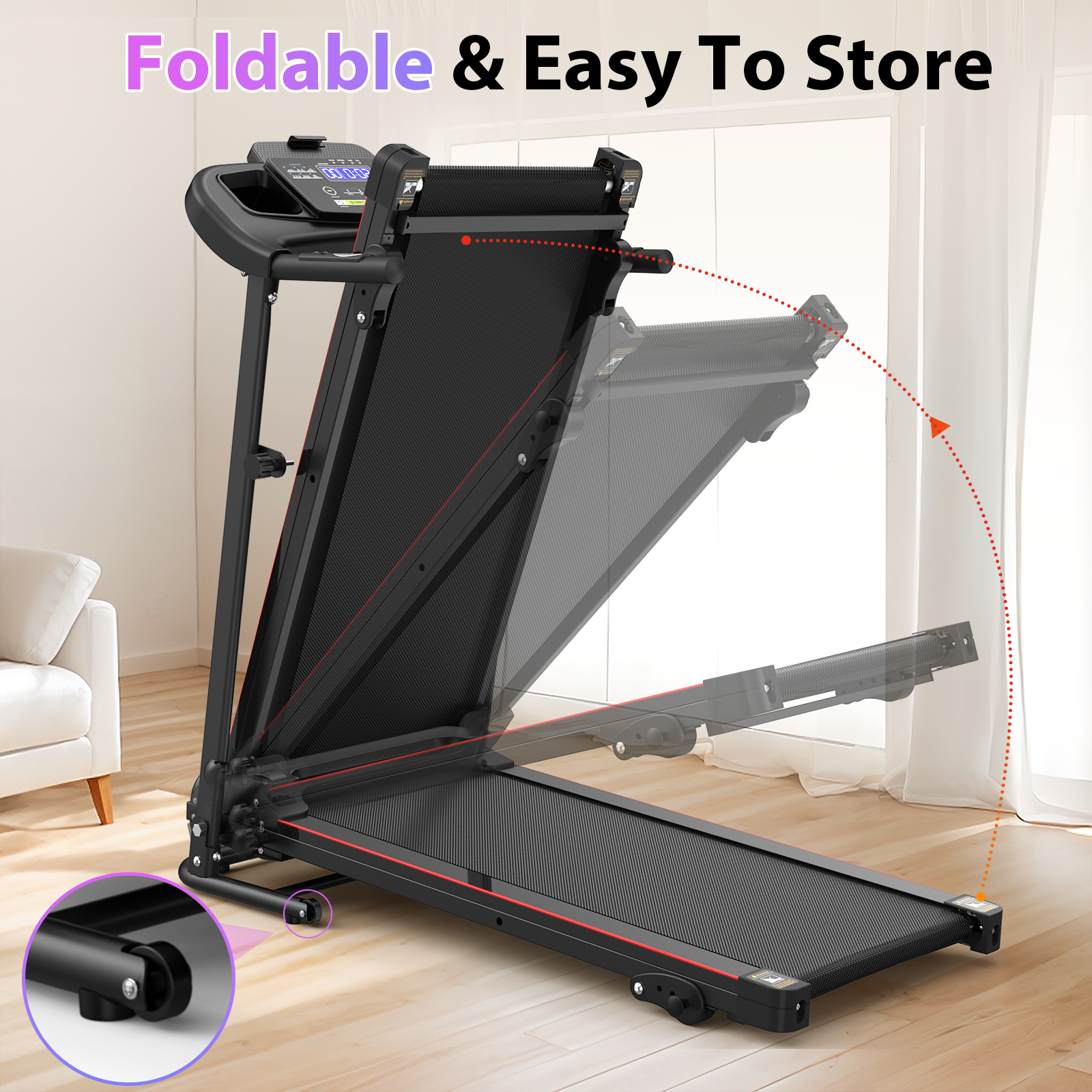 • 【3 Levels Incline Adjustments】This motorized treadmill have 3 incline angles for running, if you want to increase the degree, you can easily switch by adjusting the base. which can reduce the damage to the knee joint and consume more calories during your exercise.