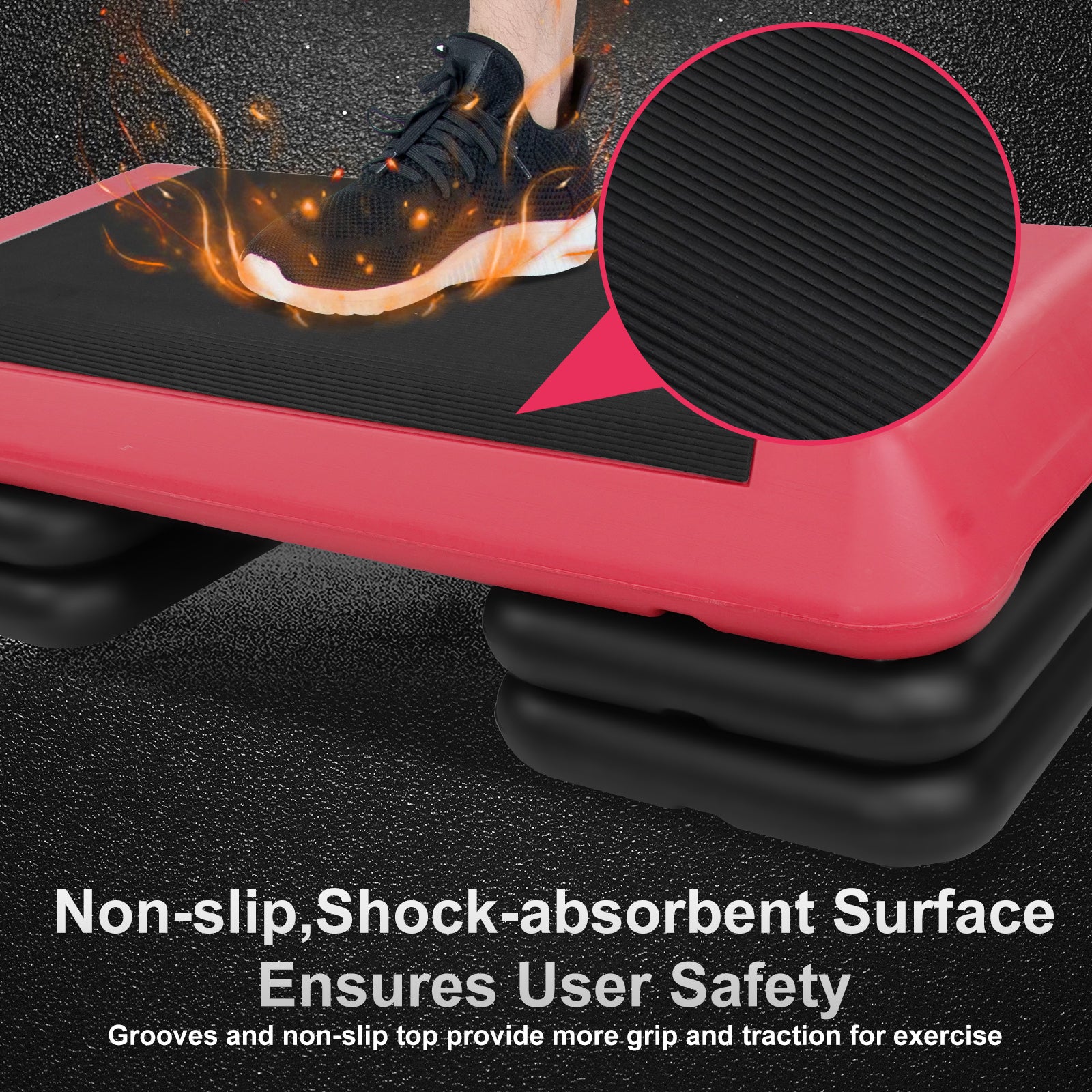 The Red Aerobic Step Platform with 4 Risers Adjustable, Health Club Size Steppers for Exercise with risers for adjustable Home Workout, stair stepper for exercise and home gym