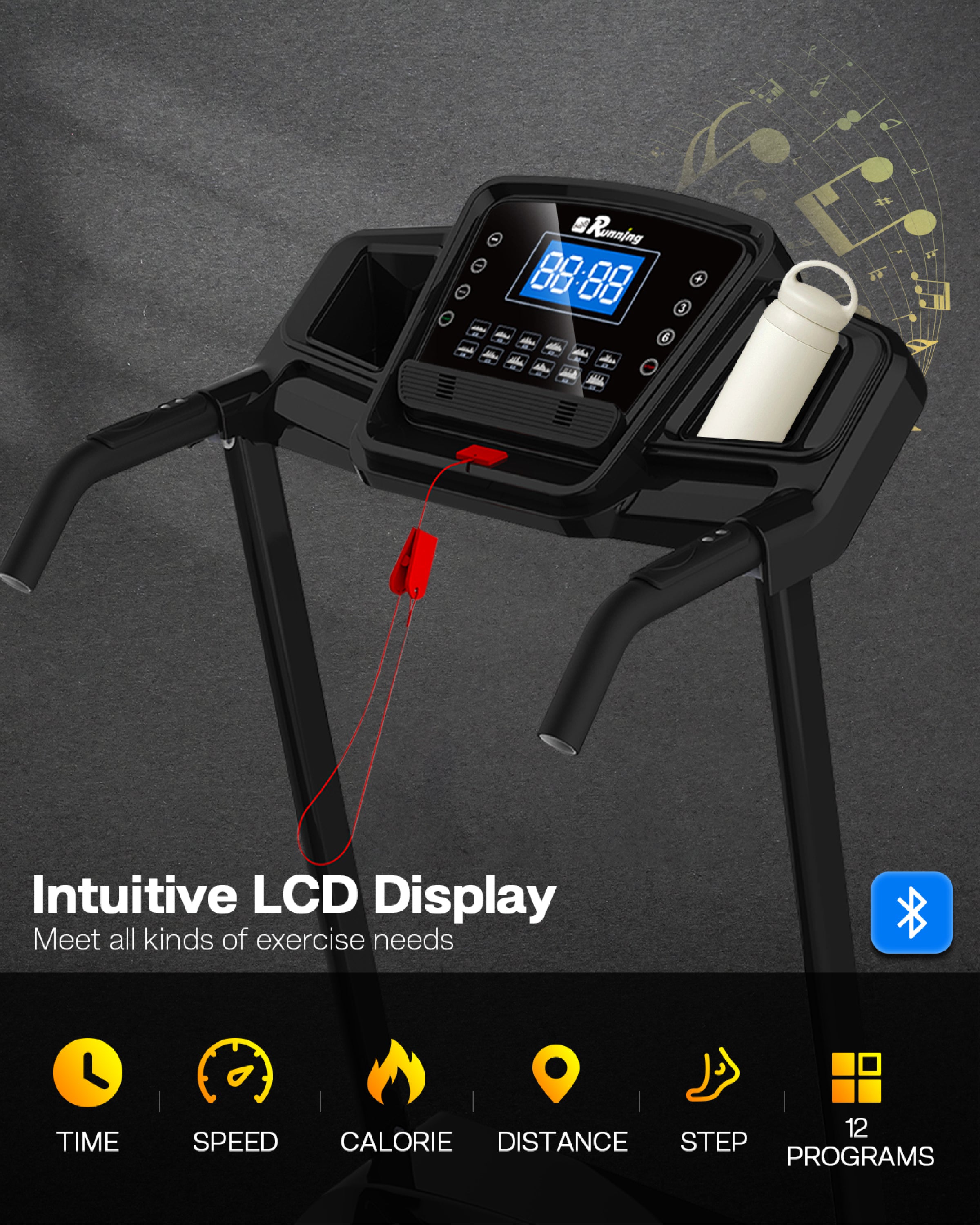 - LED DISPLAY & HIGH QUALITY RUNNING AREA - ThIS compact treadmill has a clear LED screen that displays the running distance, running speed, running time, Calorie consumption, and heart rate in real time. A quick glance shows your current state of health. The running belt uses grass-like texture design, which brings anti-skid function and more comfortable running experience. The running area is 41.3'*16.5'