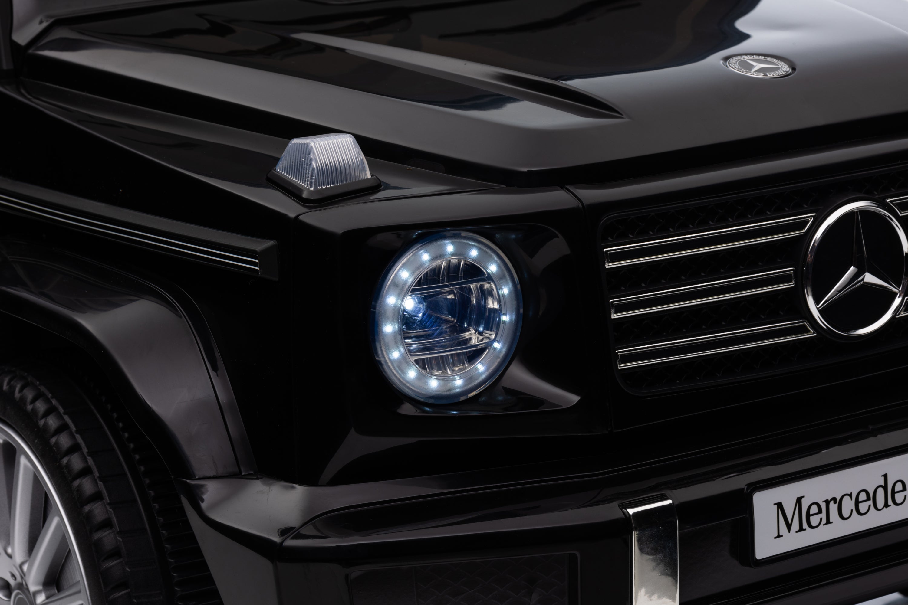 - Licensed Mercedes-Benz G500: Manufactured under official license from Mercedes-Benz G500. Looks like the real model. Your little driver can easily move forward between 3 speeds. This kid ride on car is an exquisite gift for children aged 37 to 96 month