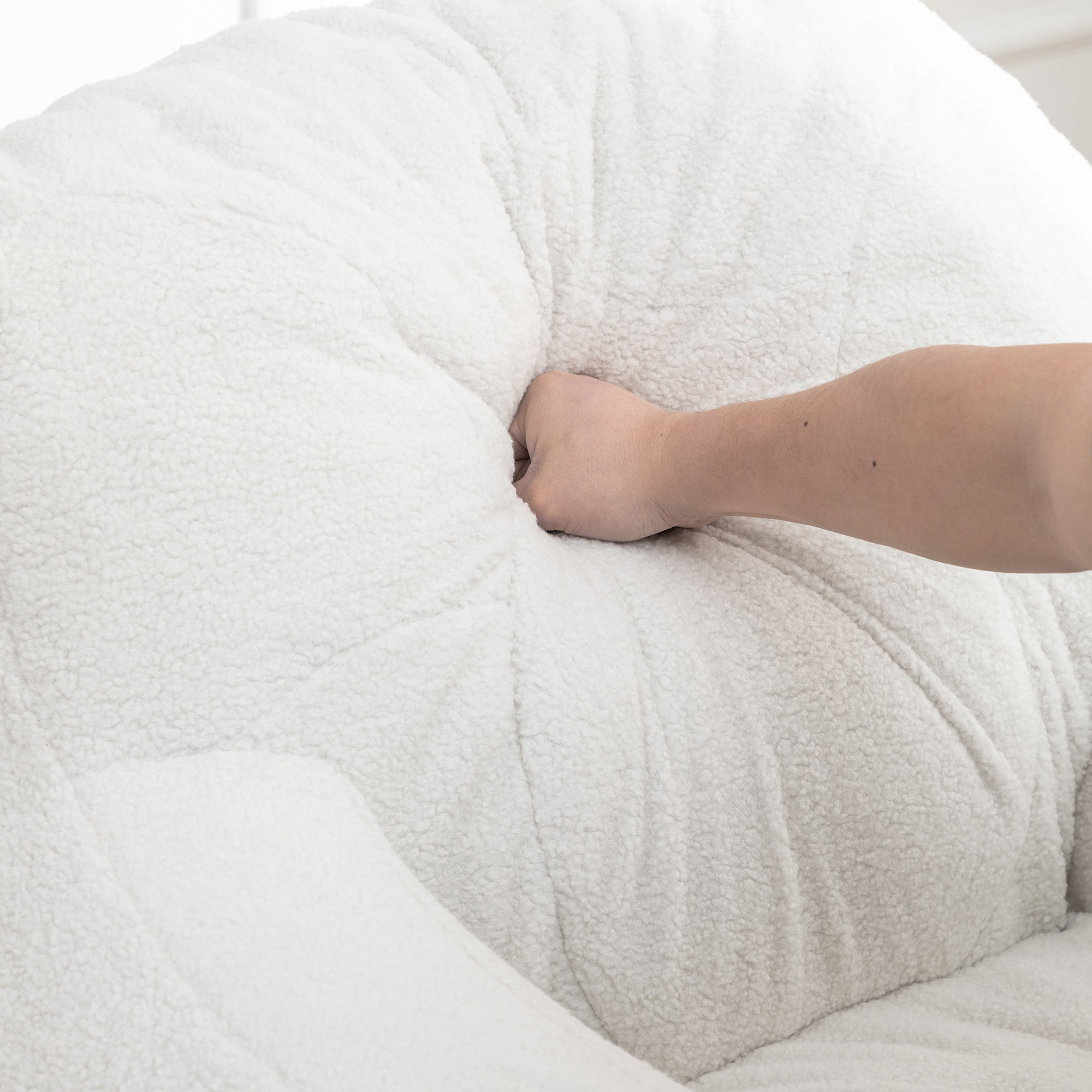 LUXURY TEDDY FABRIC: Upholstered in ultra-soft, Fluffy White Teddy Fabric for a cozy, chic, and inviting texture that instantly elevates any room's decor.