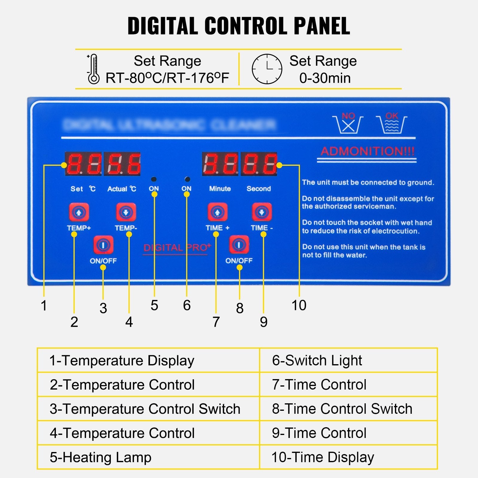 - 【HEATING FUNCTION】- Heating temperature: RT-176℉/RT-80℃ (adjustable). Heating can reduce the adhesion strength of oil and wax to certain materials to be cleaned, thereby improving the cleaning effect. Ultrasonic cleaning and heating can work at the same time. Stainless steel tight-fitting lid with handle to prevent water heat from diffusing.