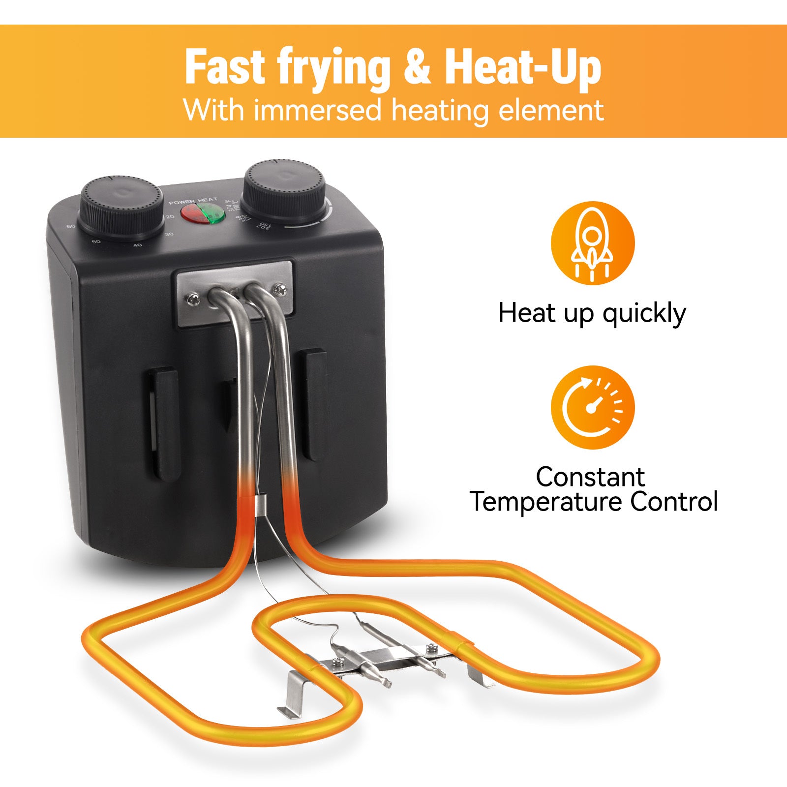- HIGH PERFORMANCE - 1700W heating element, which has fast heat-up effect and keeps constant temperature. This deep fryer with basket for home use can fry french fries, onion rings, fried chicken and other food quickly and reach the perfect crisp.