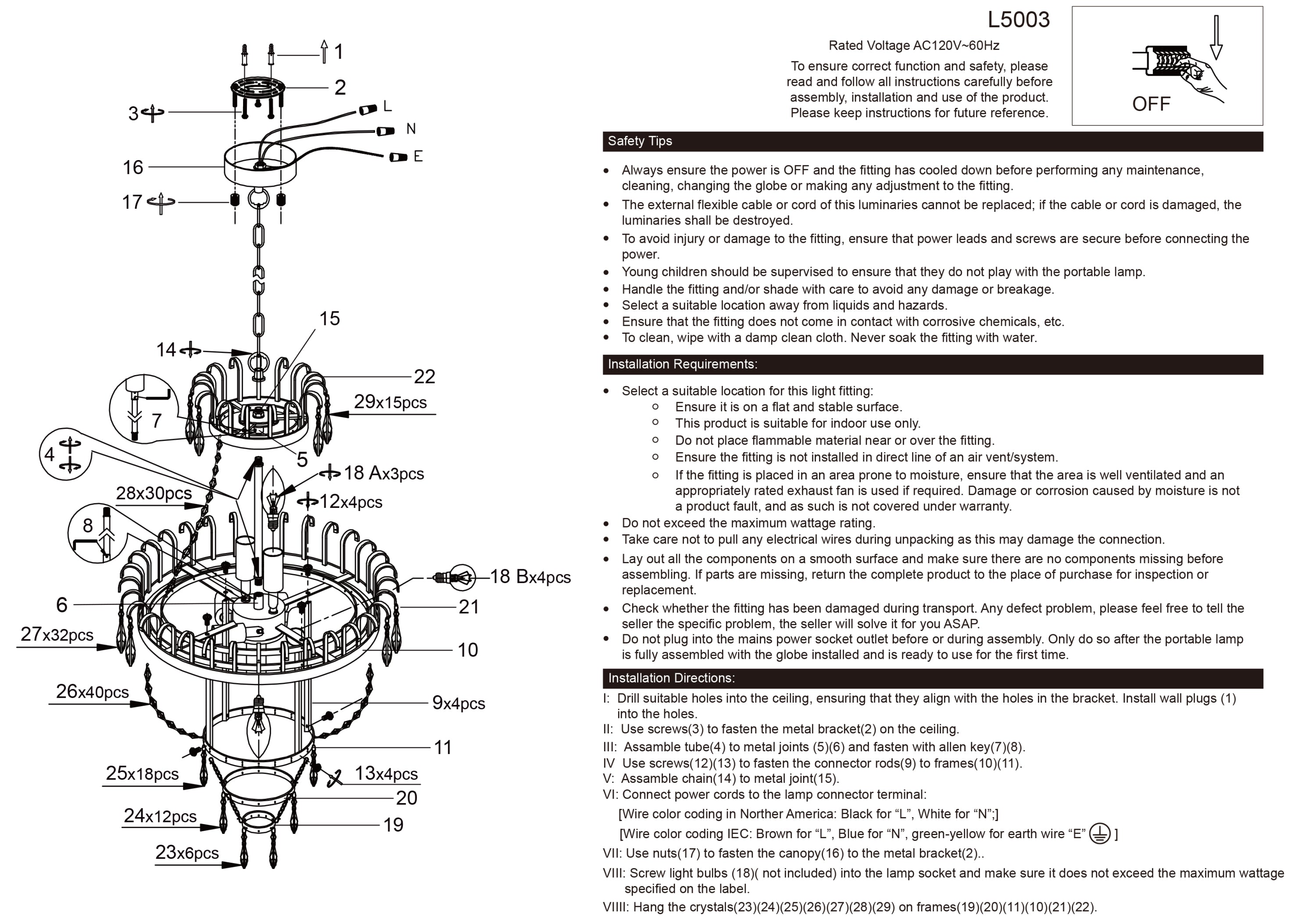 • Bulb Requirement :This crystal pendant light need 3 x E12 Candle + 4 x E12 Golf ball bulbs (Max 60-watt, Not Included)