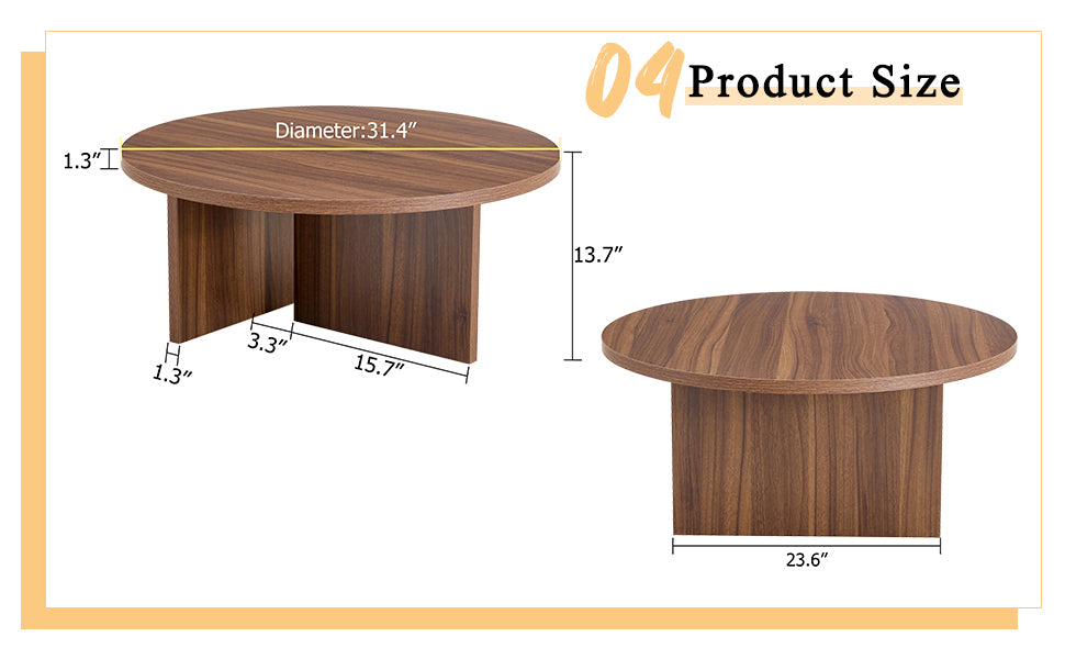 Add timeless charm to your living space with this Versatile Round Coffee Table, featuring a rich walnut-finished MDF surface that beautifully blends modern minimalism with Nordic elegance. With a compact yet functional design, this table measures 31.5" x 31.5" x 13.98", making it the perfect centerpiece for apartments, studios, or cozy living rooms.