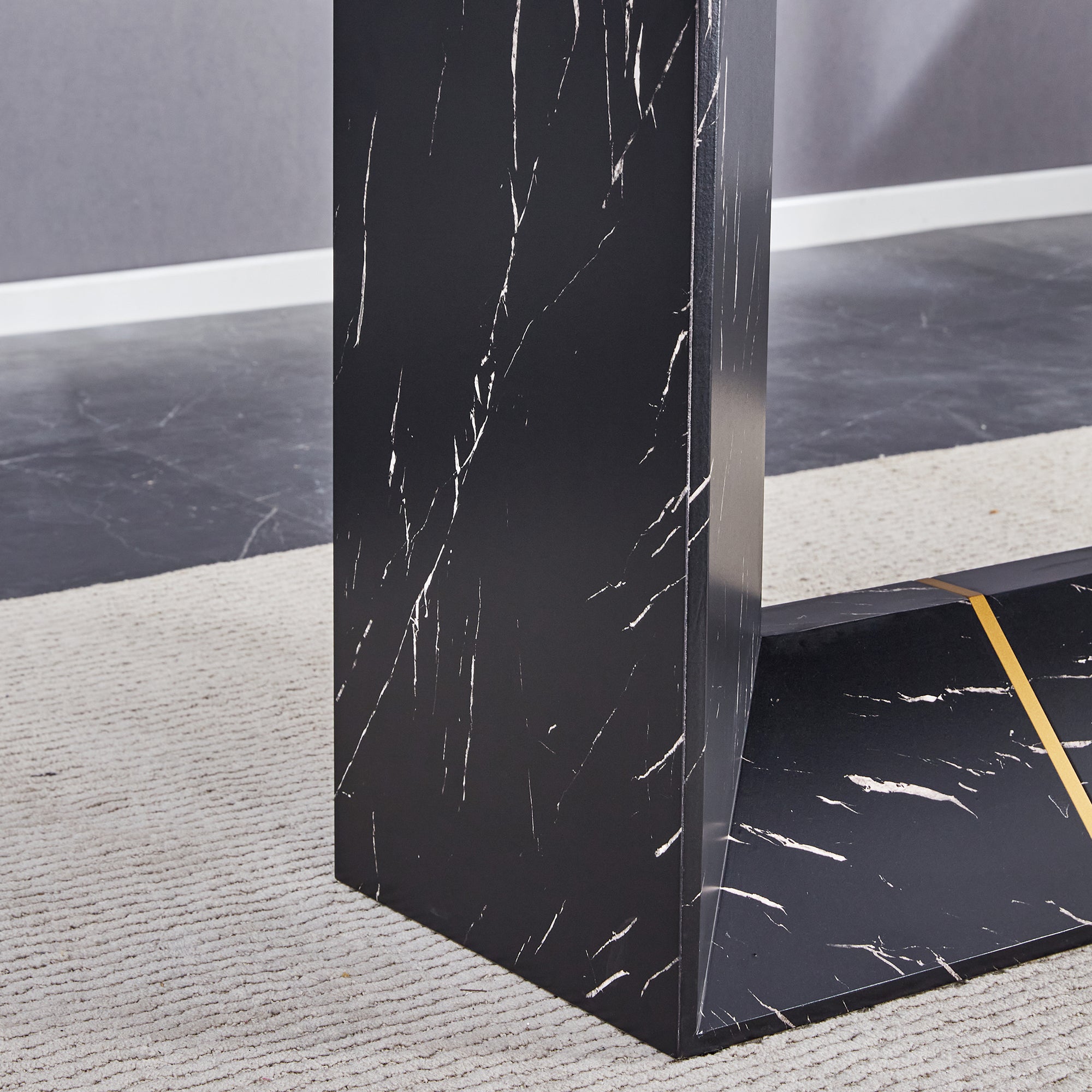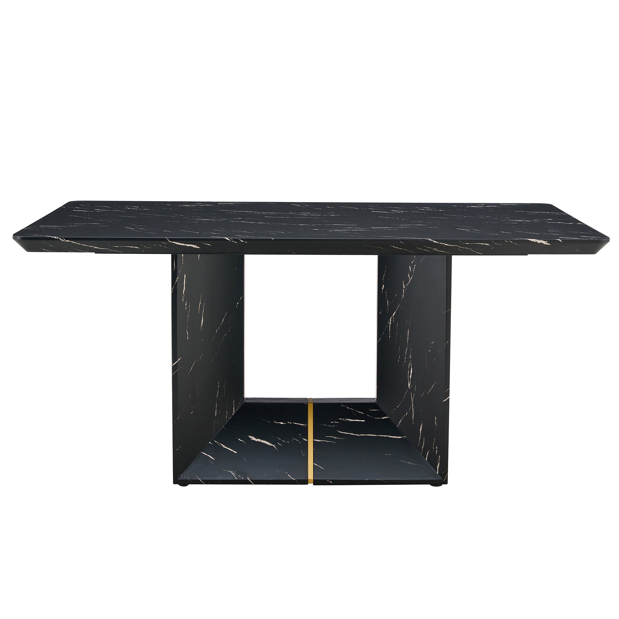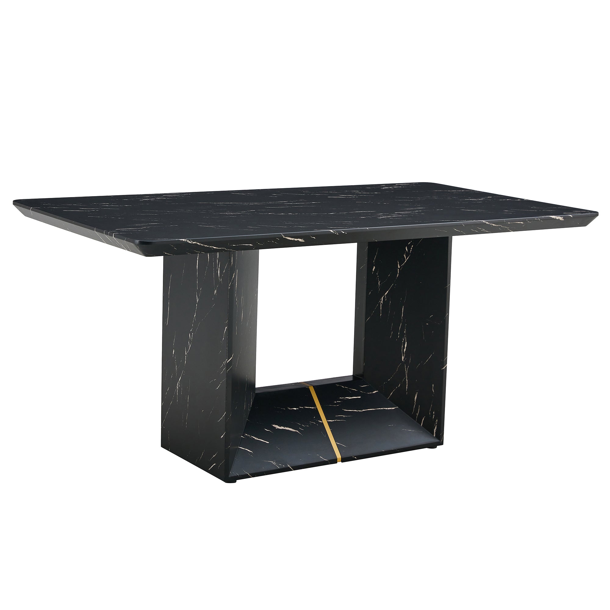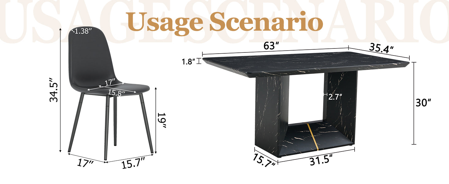 • Spacious Table Size: The table size is 63*35.4*30 inches, suitable for family gatherings and everyday dining. With its MDF black marble patterned top,more durable and radiation free,Luxury and elegance coexist, showing the charm of modern home.Adding a touch of elegance whether it is a family dinner or entertaining guests.
