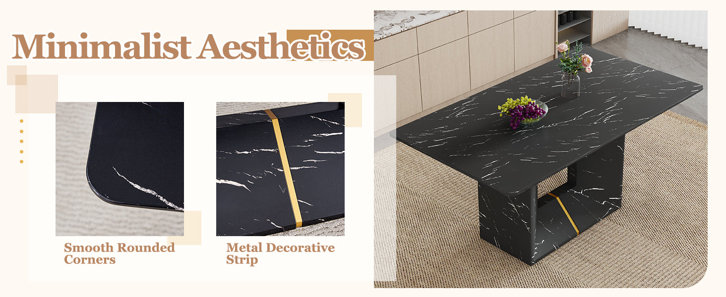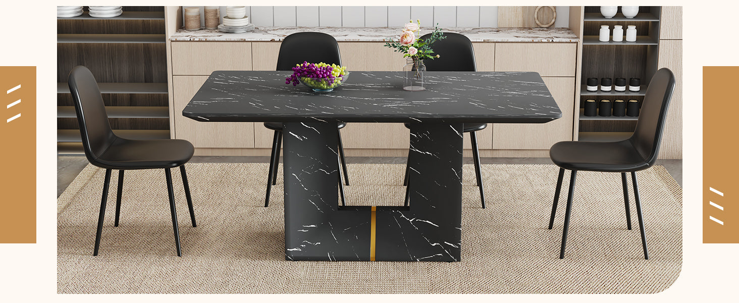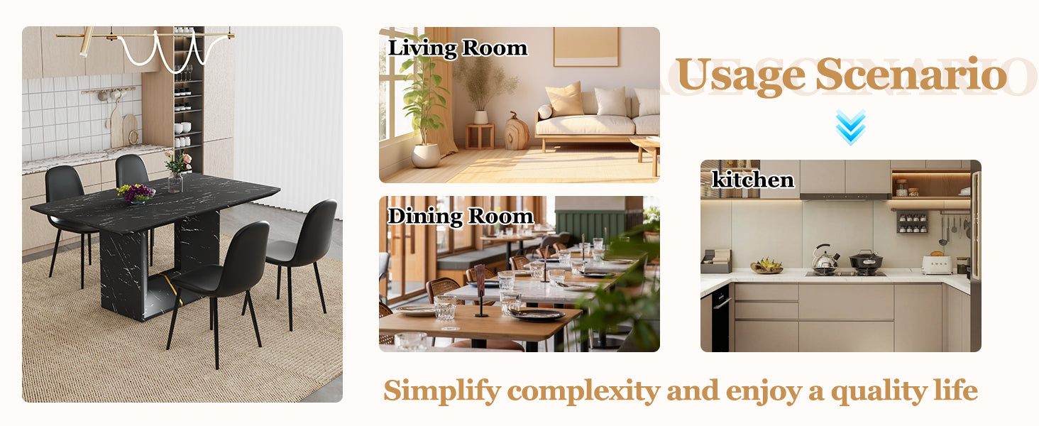 • Elegant Black Marble Pattern: The dining table features an MDF construction with a black marble pattern sticker, showcasing a modern and elegant design style.