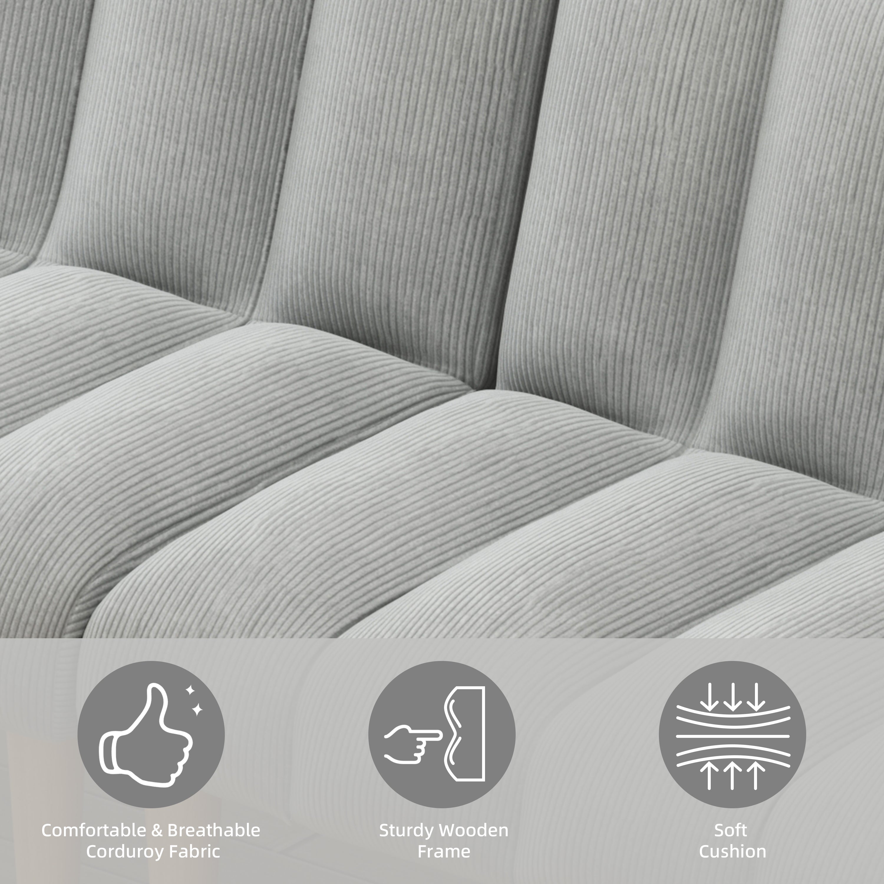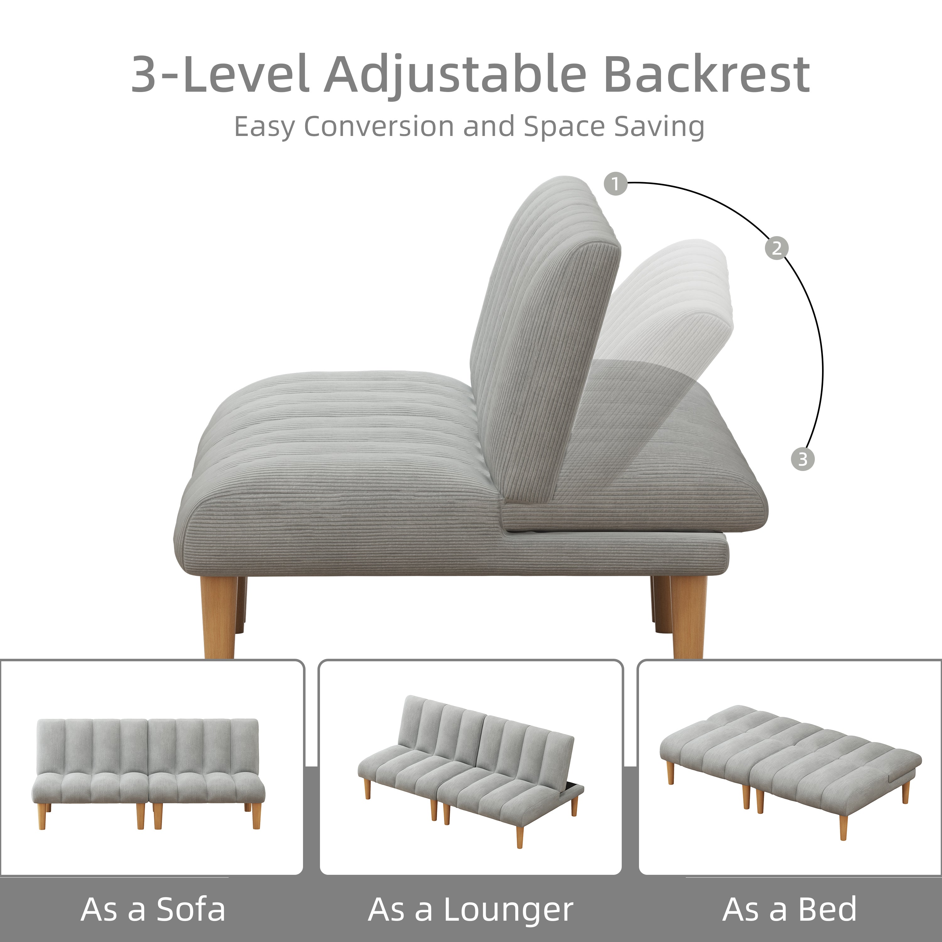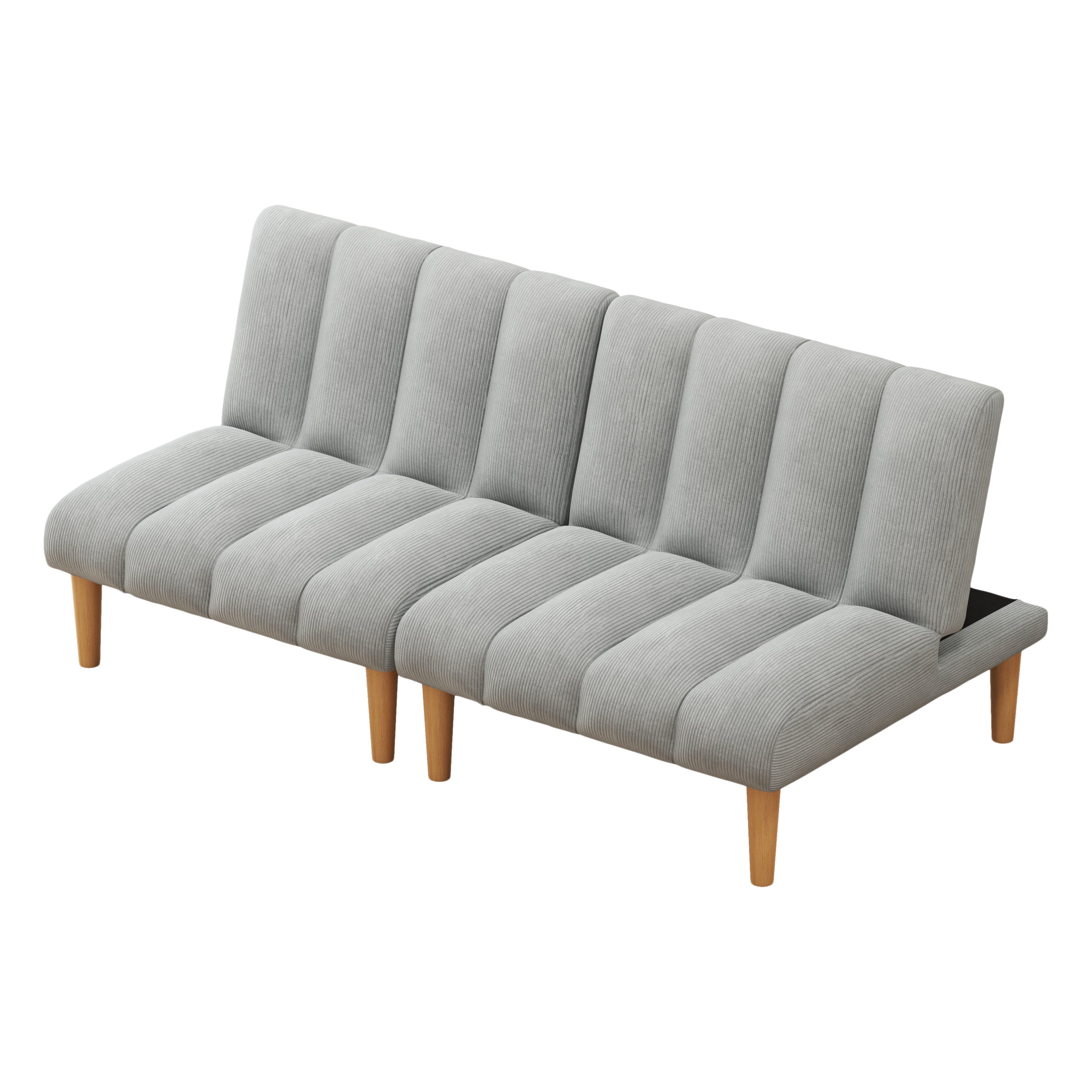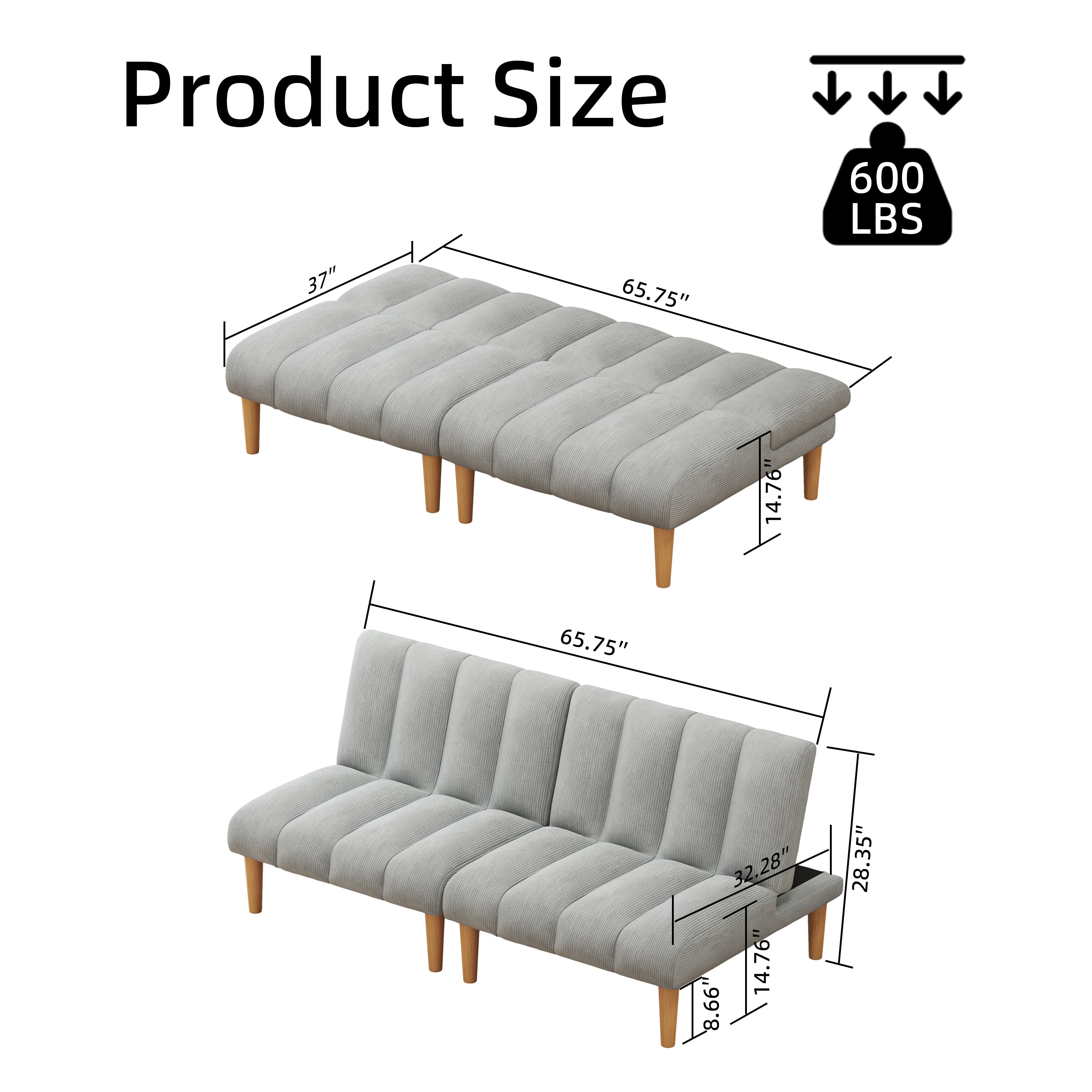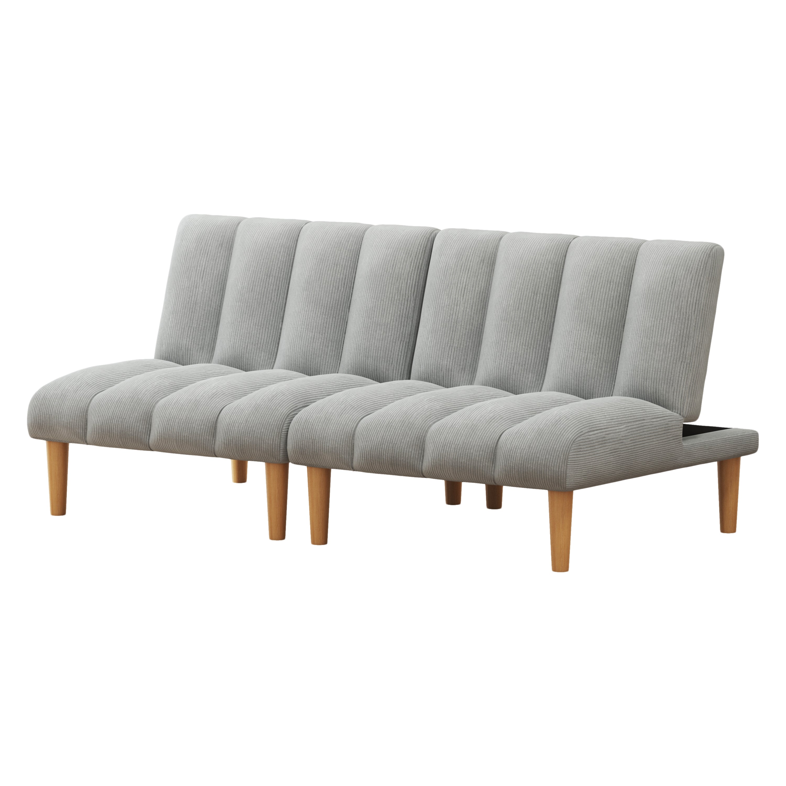 Corduroy fabric, wooden legs convertible sofa bed (Color:Grey)