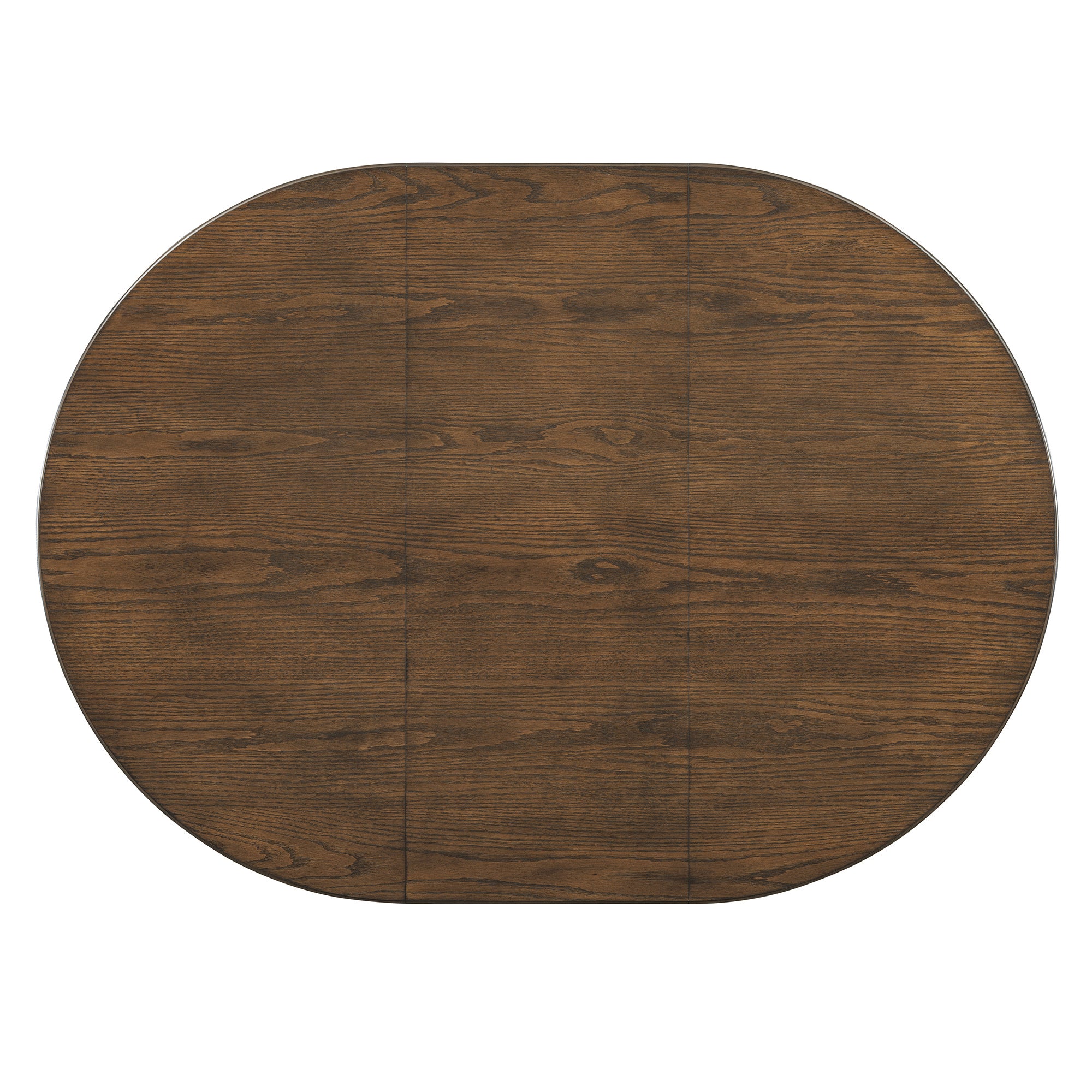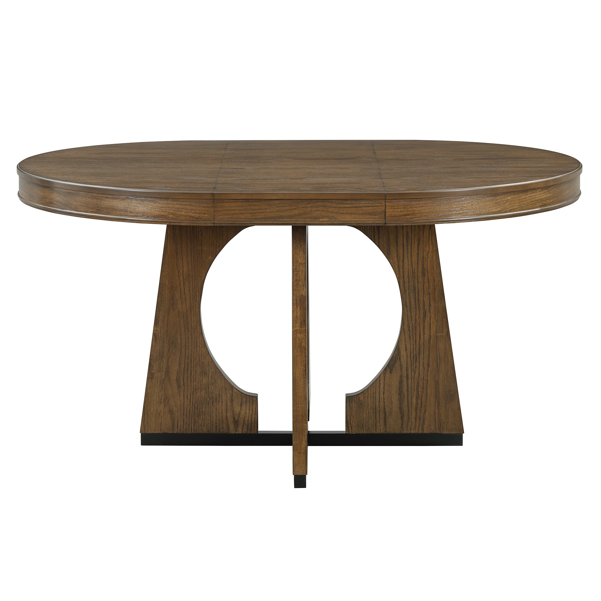 Keywords: round dining table set for 4, extendable table with leaf, walnut dining set, retro dining furniture, geometric base table, TREXM dining table, 5-piece dining room set, kitchen table with chairs.