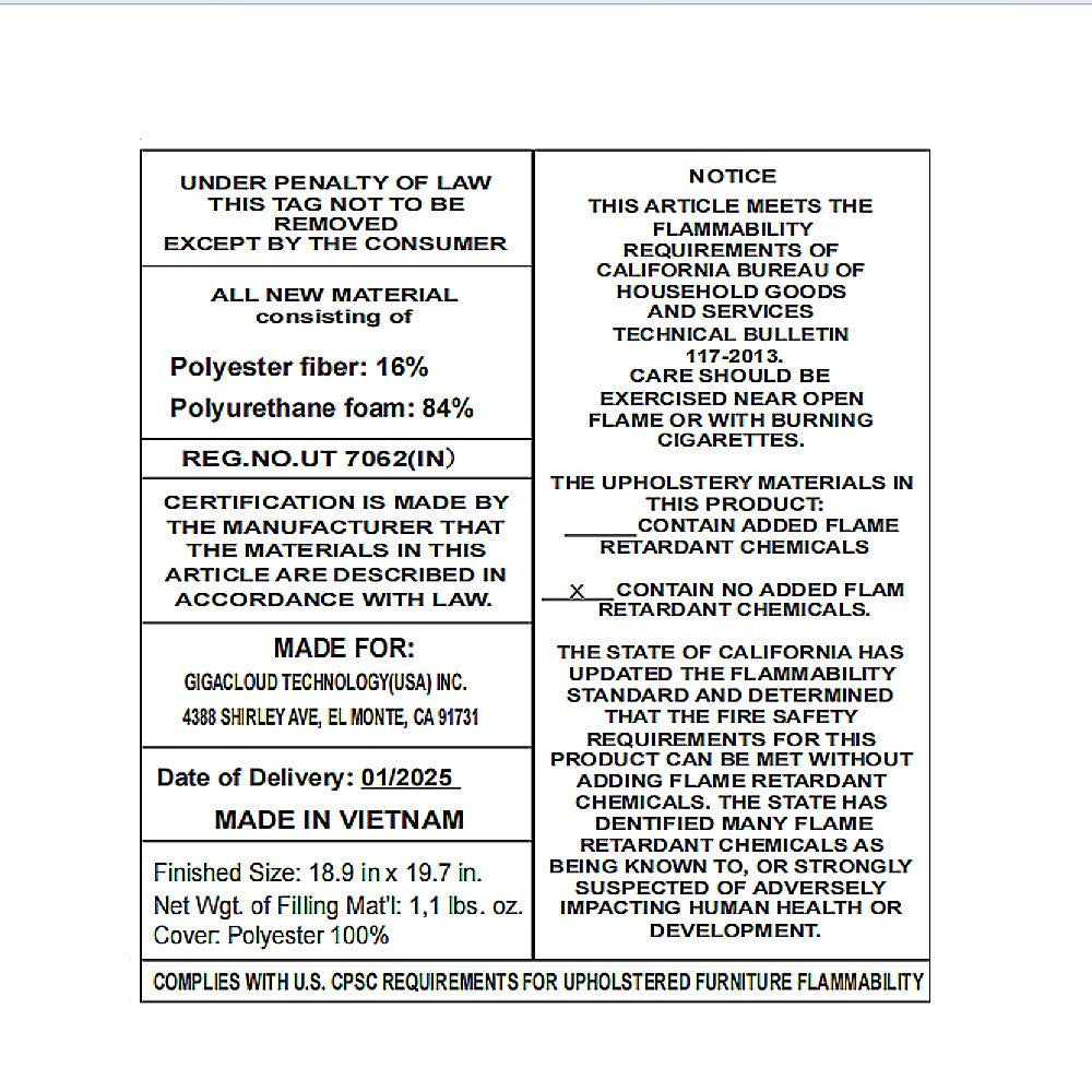 | Chair | 18.9'L x 22.8'W x 37.4'H, 14.9 LBS/PCS |
