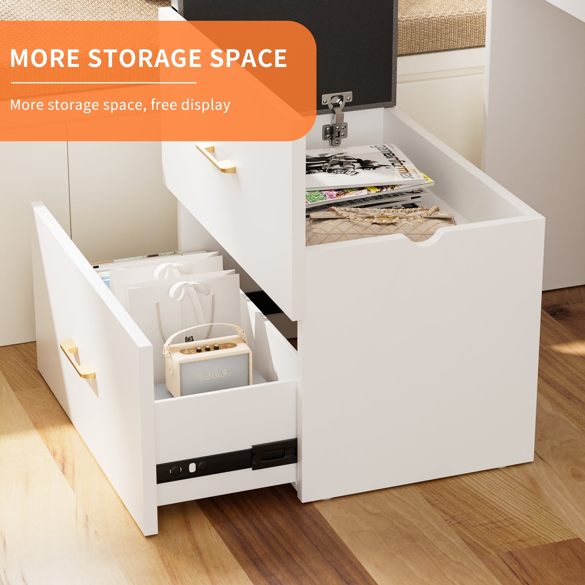 - 【Spacious Storage Space】Equipped with a flip-top jewelry organizer, a hidden storage space(8') for your tall bottle skin product,a drawer,a fluffy bench with a large organizer drawer that holds a large amount of makeup and jewelry,skin care products.