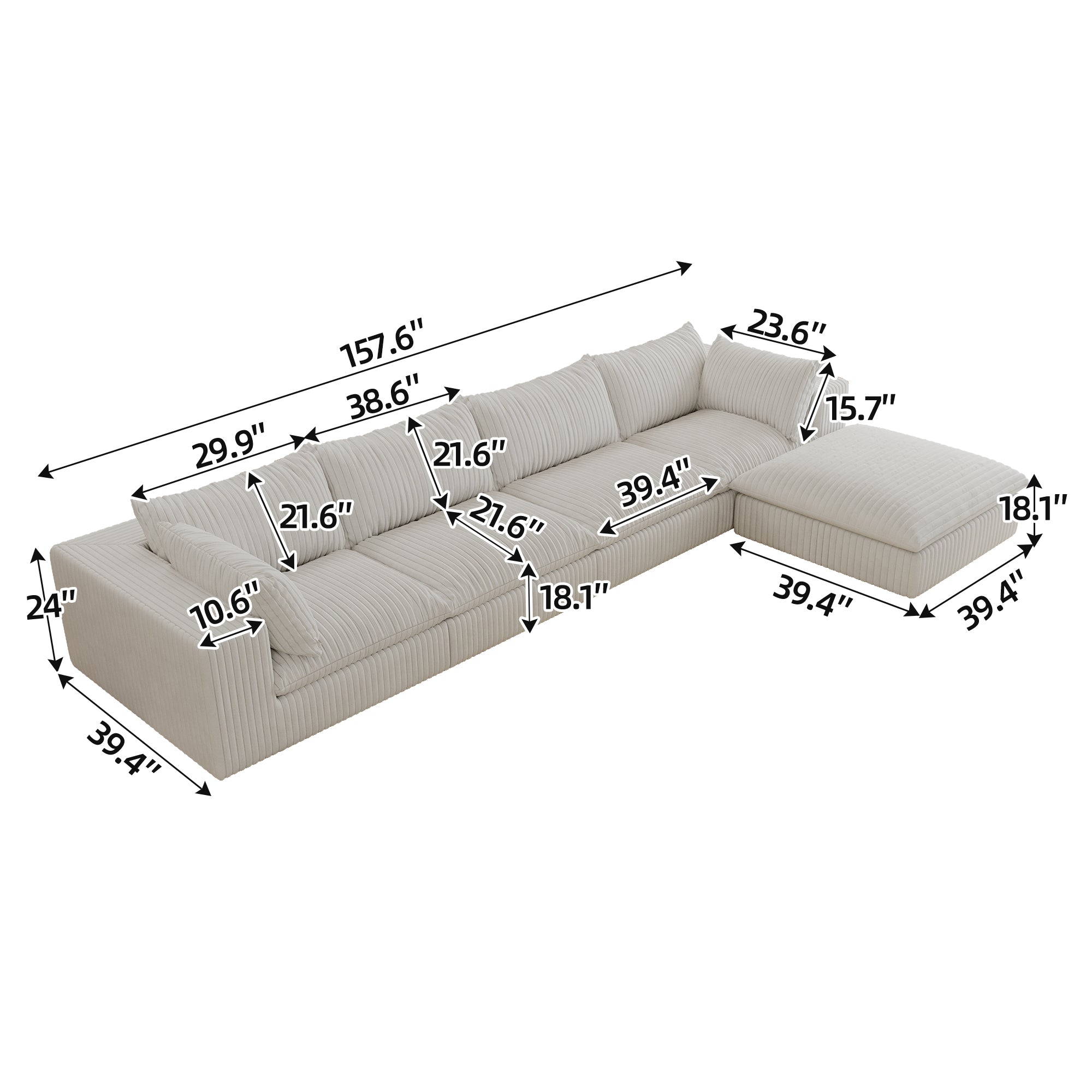 157.6" Cloud Sofa - Corduroy Deep Seat Couch, No Assembly, White