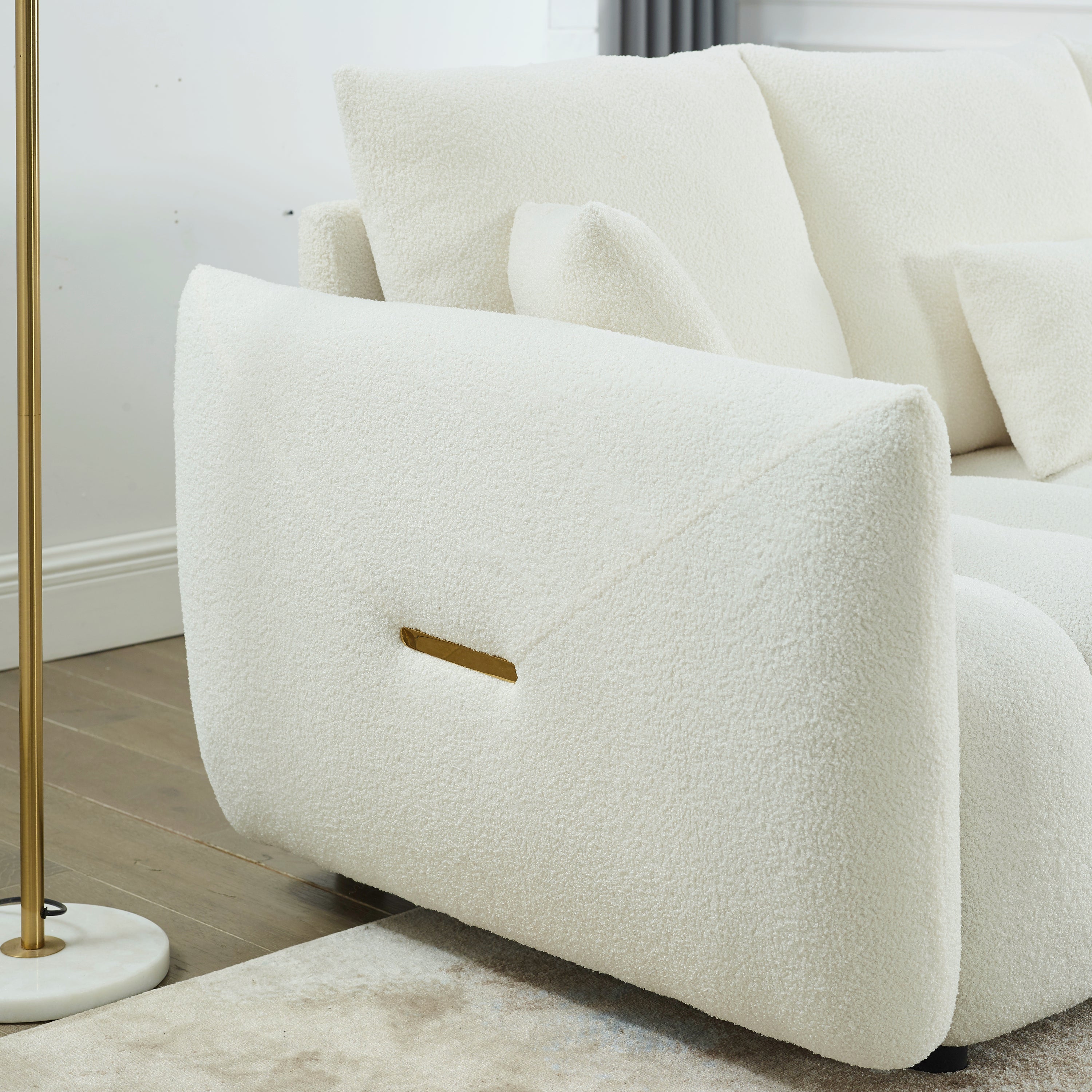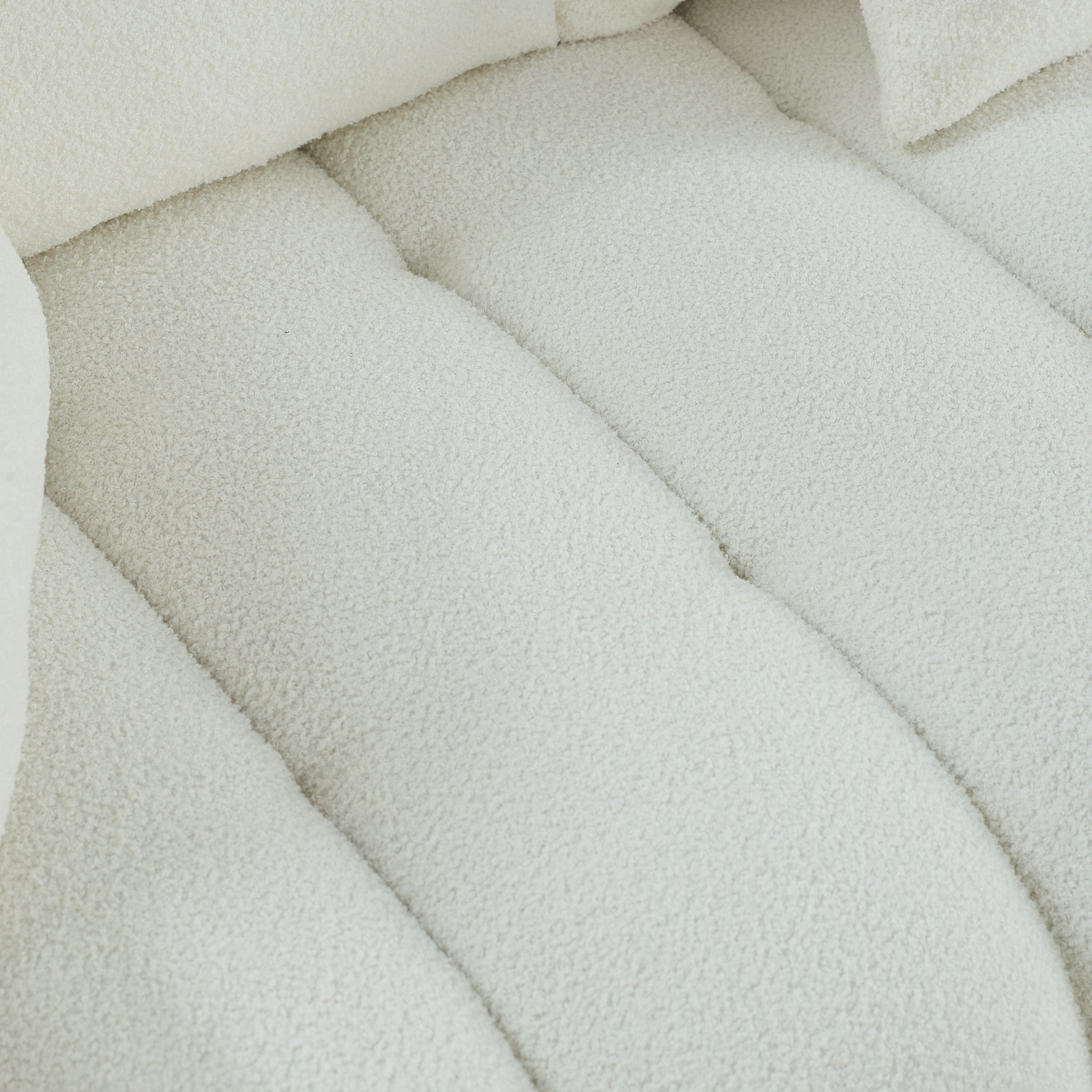 - The modern sofa is made of soft teddy fabric plus foam padding to provide you with maximum comfort. Sitting on it, you will be surrounded by ultra-soft plump backrests with optimal comfort angles, making you feel like you are sitting on a cloud. Add this sofa to make your living room space more sophisticated and elegant.