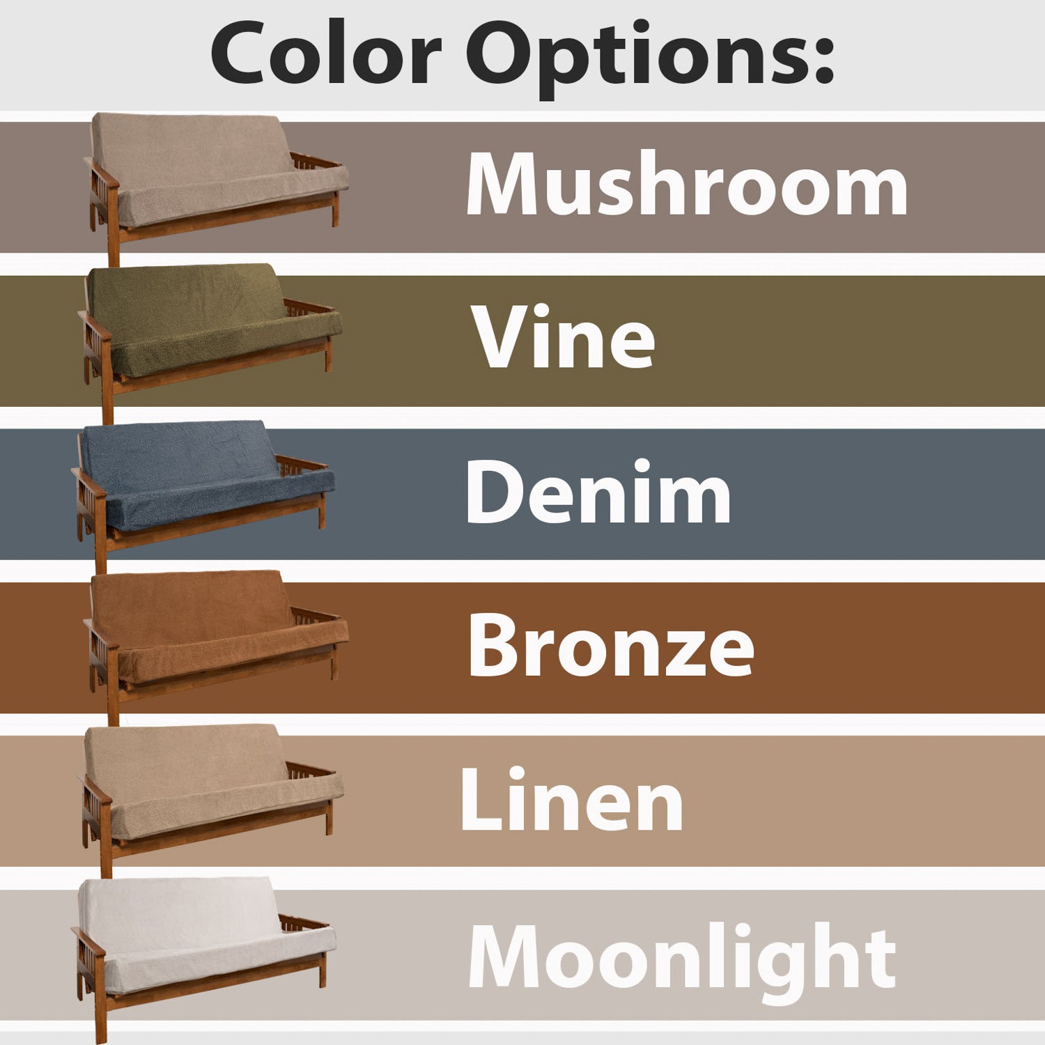 • Comfortable and Heavy-Duty – This thick futon mattress offers firm support while maintaining plush comfort for sitting and sleeping. Stylish Color Options – Available in Deep Forest and a range of other colors, including Vine, Mushroom, Moonlight, Linen, Denim, and Bronze, so you can match your futon mattress to your décor.