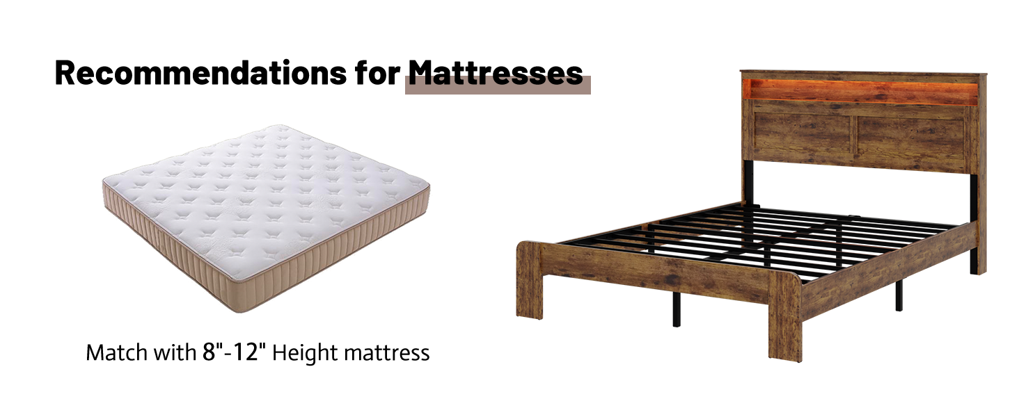 • [Practical and Comfortable 2-in-1] Vintage shelf headboard combine practical and comfortable to match any style of the room. Bed Frame Queen Dimensions : L*W*H: 87.08 * 61.57 * 43.11'