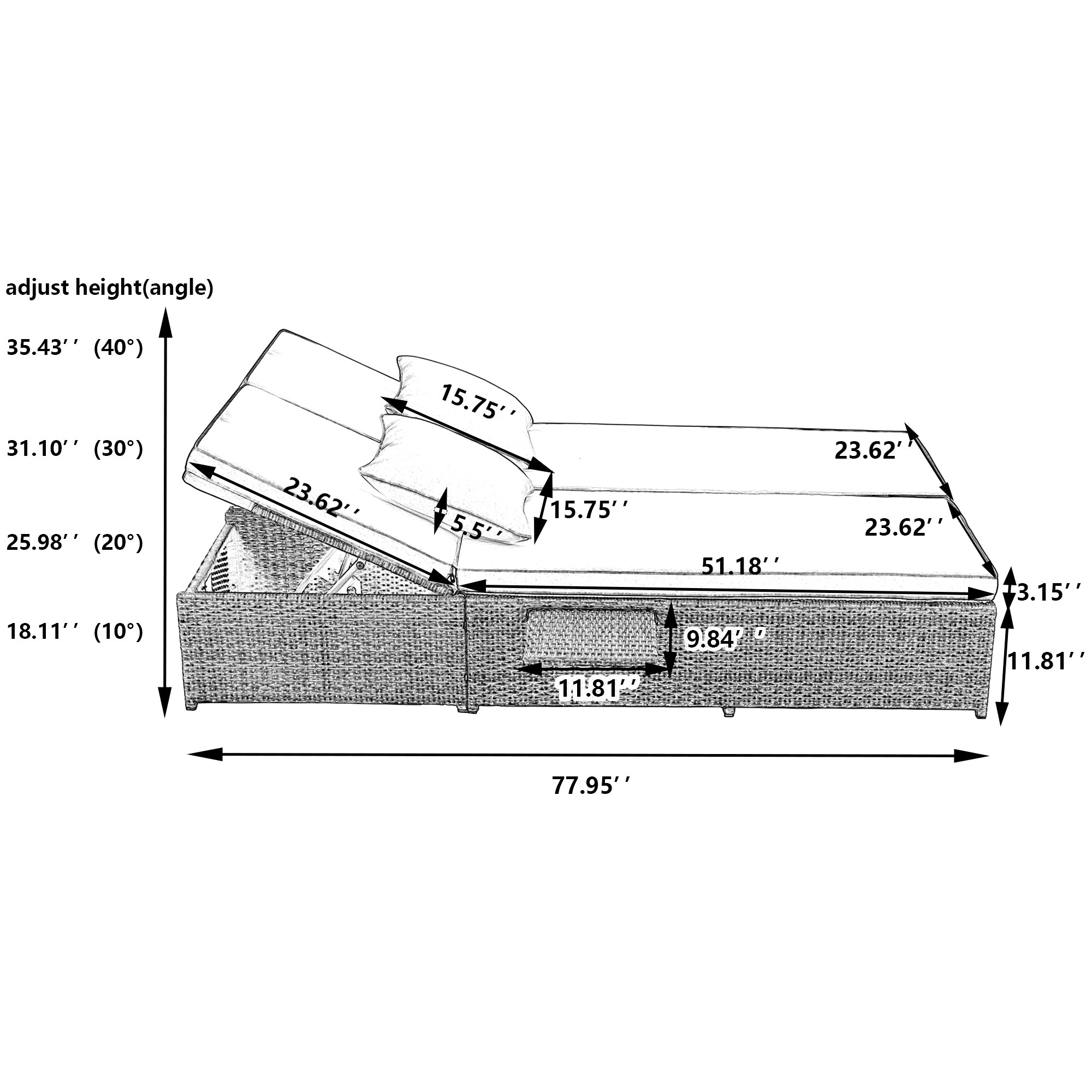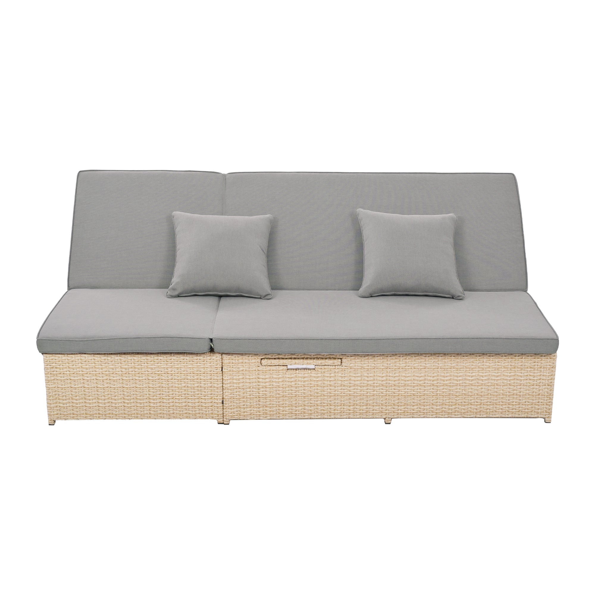 - [High Quality Wicker Rattan Set] The reclining chairs are constructed from all-weather PE rattan frame which is water-resistant and UV-resistant.The seat cushions are filled with 3.15'' thick sponge for superb comfort and durable. When you lie down, you can enjoy the soft pillows with 5.5'' thick sponge. The breathable cushion covers for seats and pillows are all easy to replace and machine washable.
