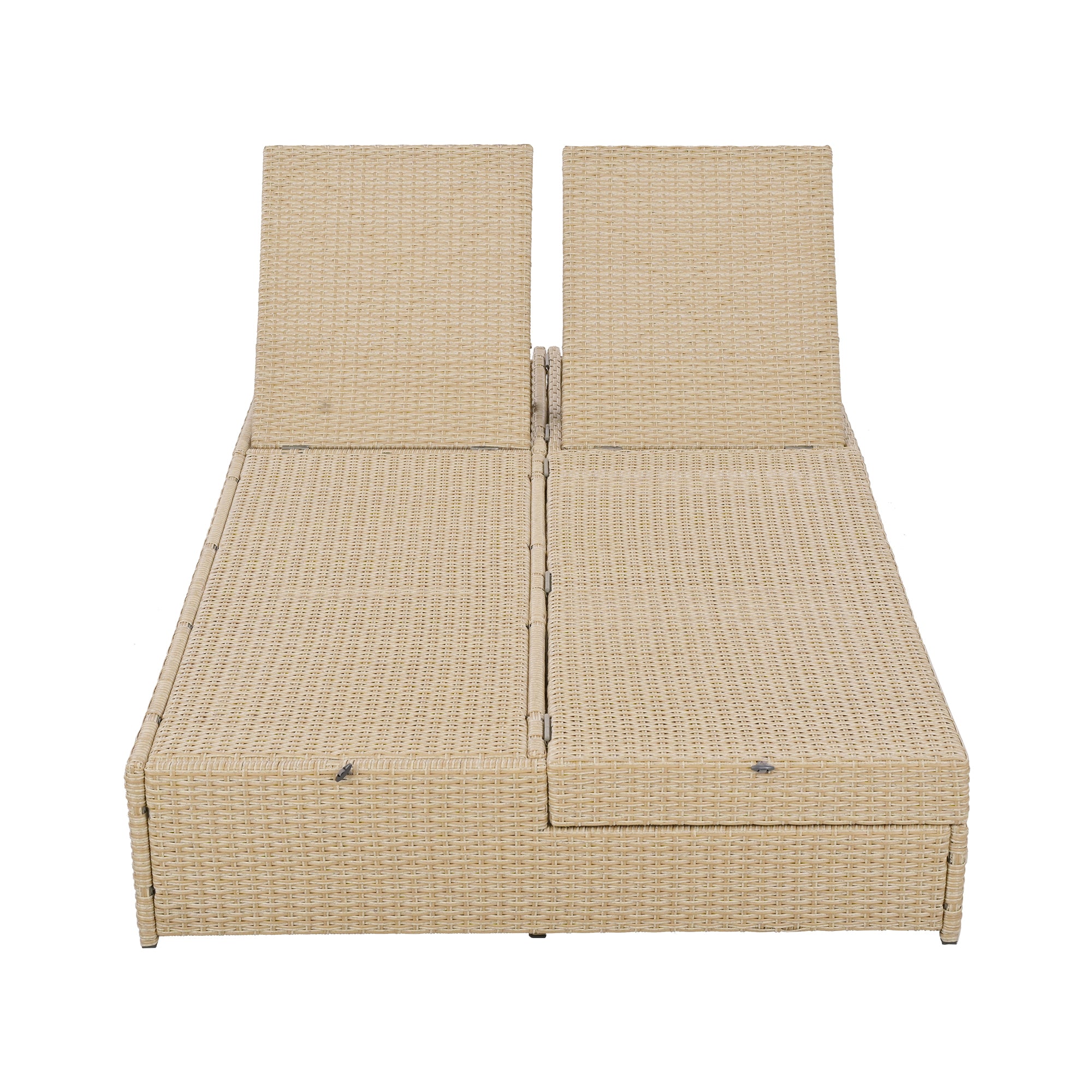 TOPMAX Outdoor Double Sunbed, Wicker Rattan Patio Reclining Chairs with Adjustable Backrest and Seat, Conversational Set for 2 Person, Brown