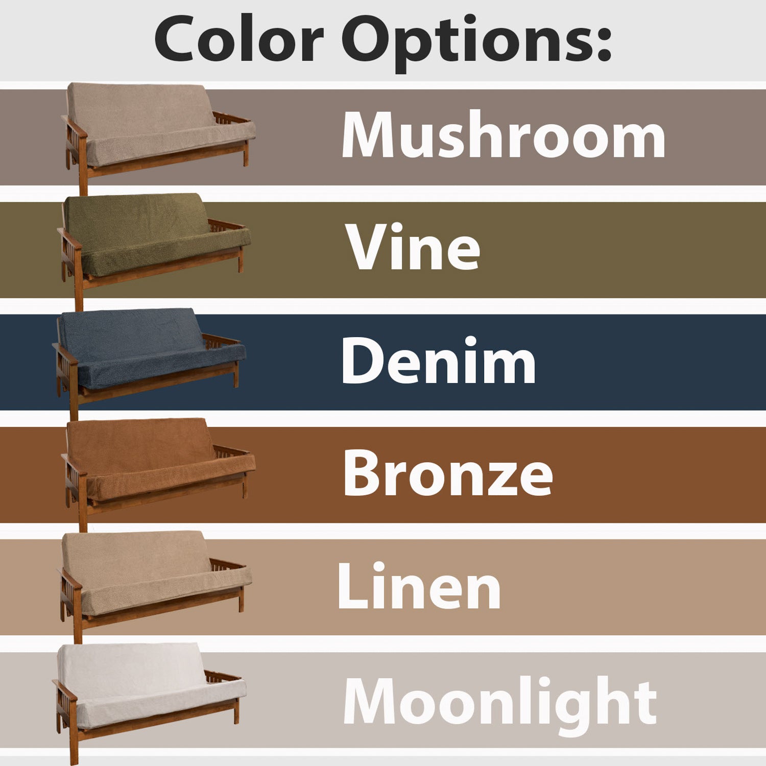 - Comfortable and Heavy-Duty – This thick futon mattress offers firm support while maintaining plush comfort for sitting and sleeping. Stylish Color Options – Available in Deep Forest and a range of other colors, including Vine, Mushroom, Moonlight, Linen, Denim, and Bronze, so you can match your futon mattress to your décor.
