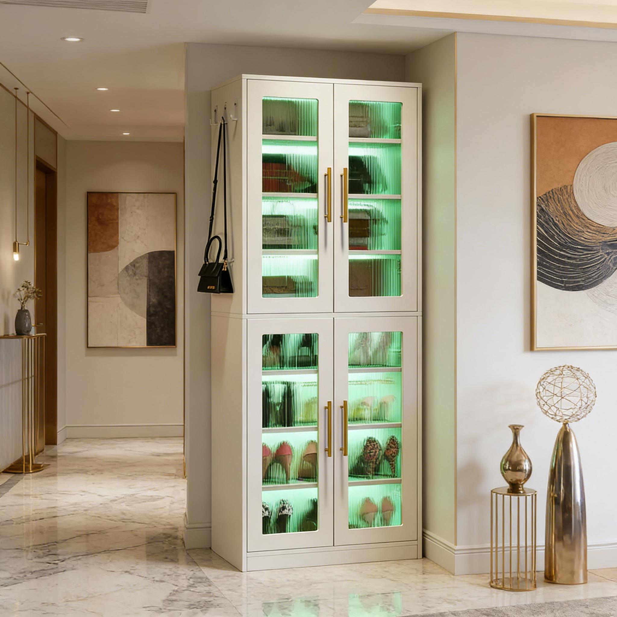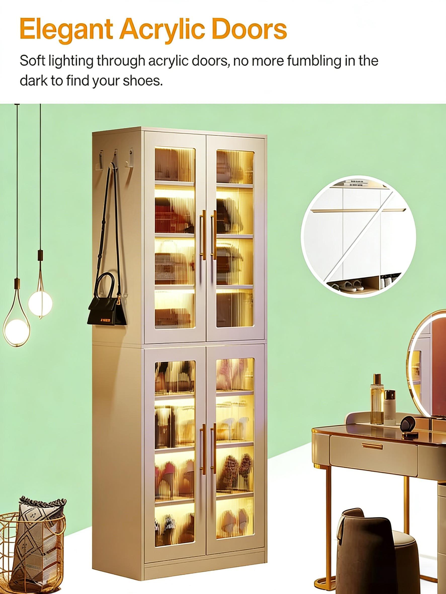 - Elegant & Modern Style - With simple lines and hazy acrylic doors, this shoe cabinet adds a refined touch to any interior decor.