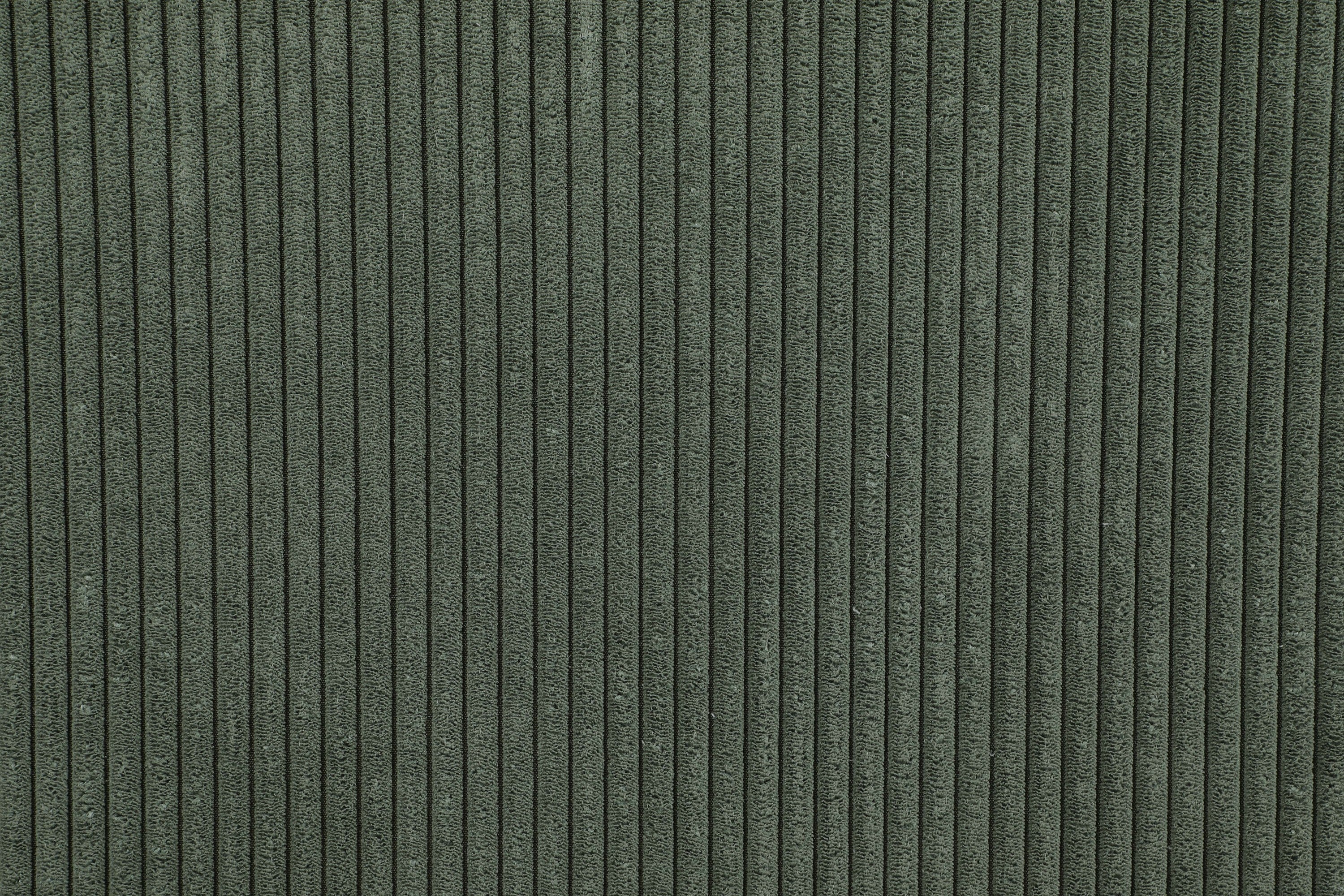 - The seat and backrest are upholstered in plush, ribbed corduroy fabric in a soft tone, adding both texture and coziness.