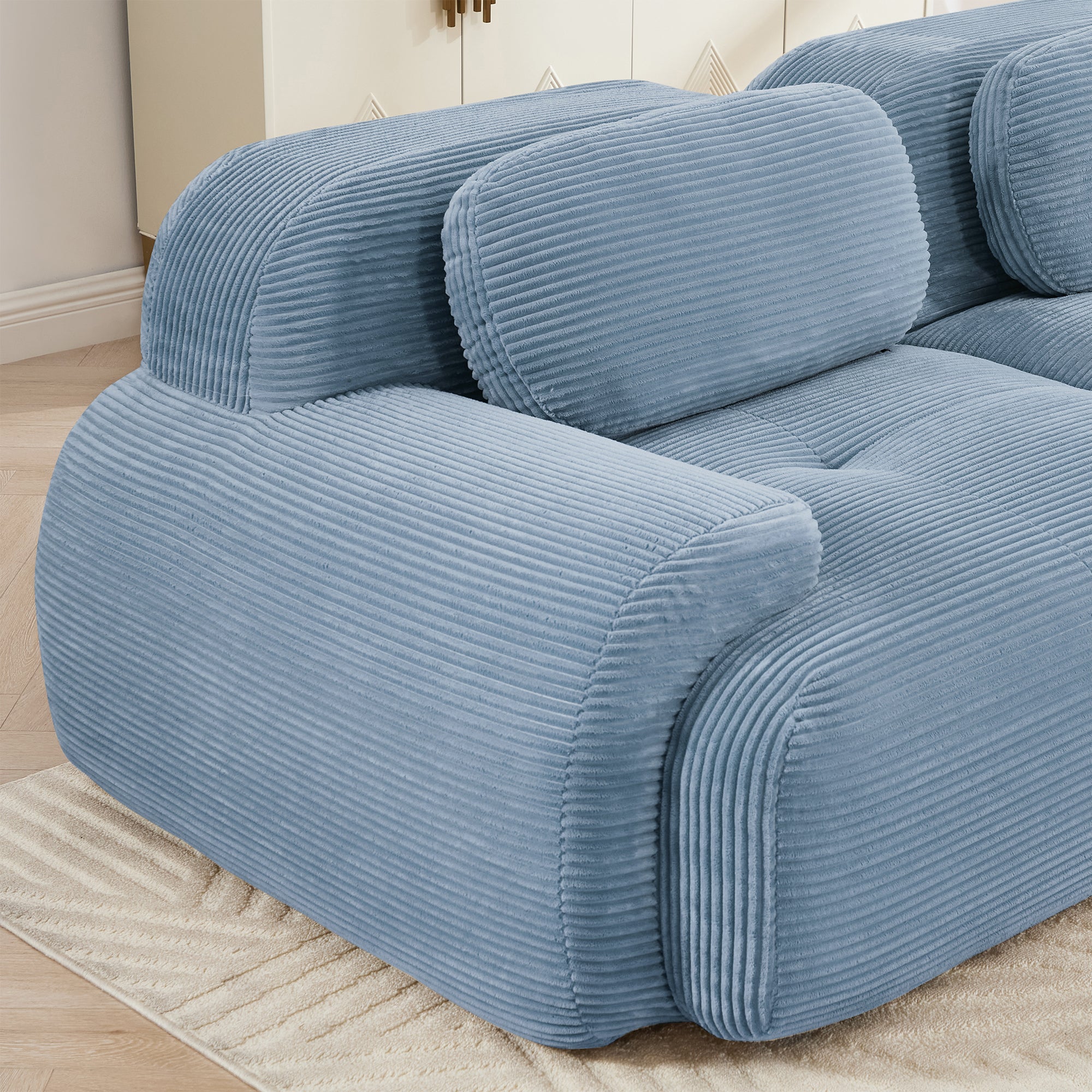 2-seat sofa in luxuryCorduroy Fabric fabric modular multi-combination anti-slip design assembly chaise lounge curved armrests ergonomic support high-resilience sponge for living rooms bedrooms,Blue