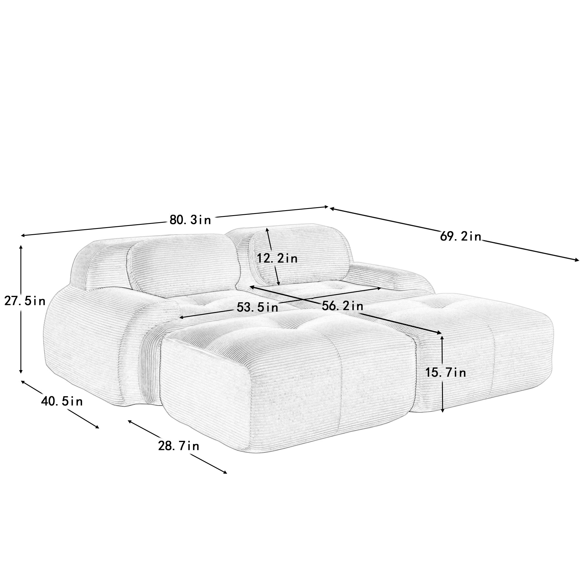 - No Assembly Required: Our modular sofa eliminates the hassle of complicated furniture setup – it's ready to arrange right out of the box. Simply unpack all components and gently pat each module to activate its elasticity, restoring its beautiful shape.