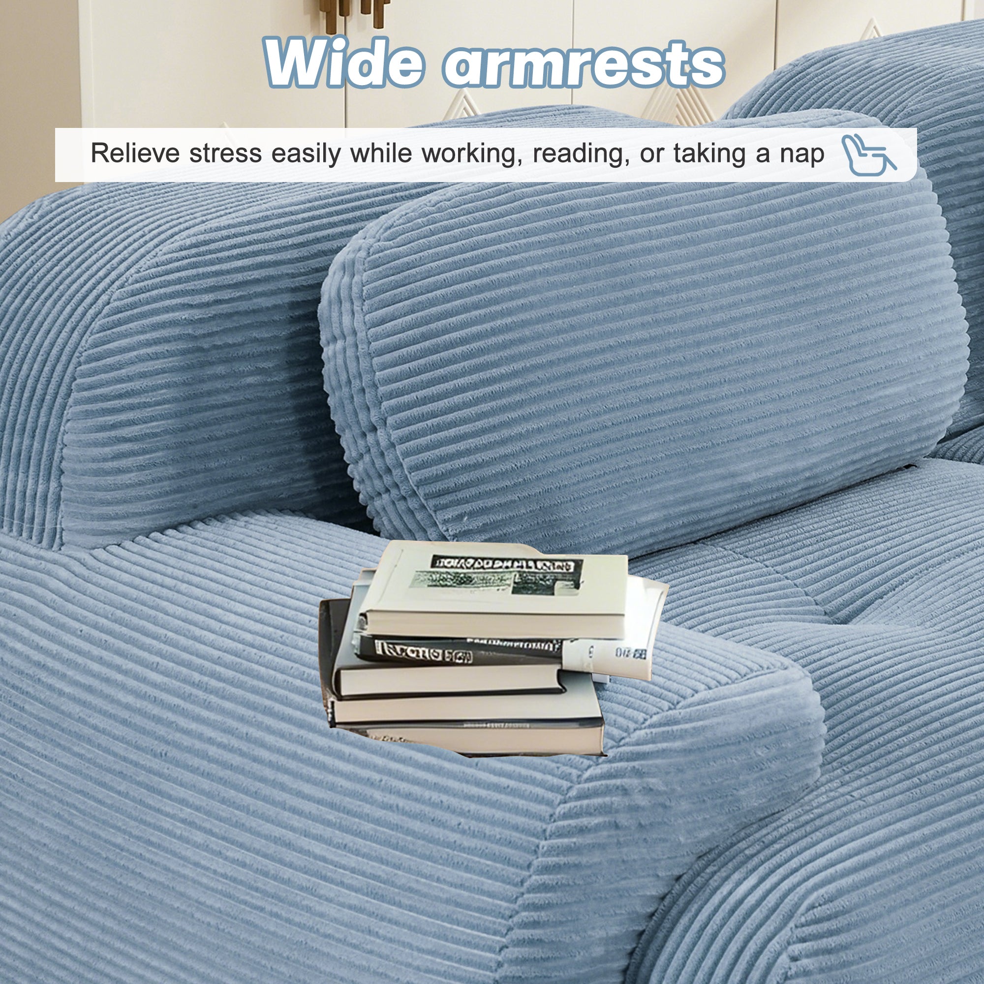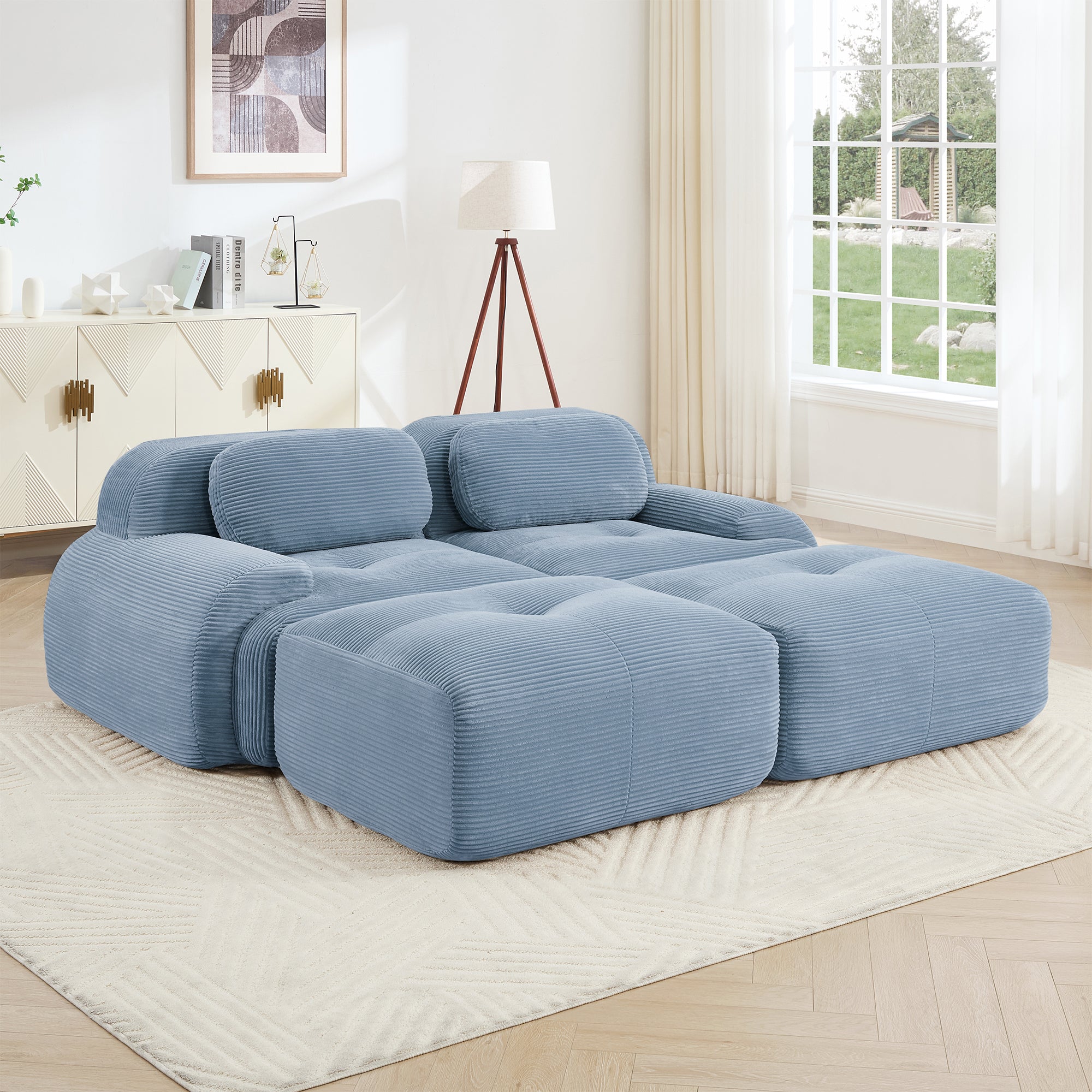 - Ergonomic design:This sofa features an ergonomic curved design with a multi-angle adjustable backrest. The seat uses 32D high-resilience sponge for quick rebound and durability, paired with skin-friendly breathable corduroy for cloud-like comfort. The widened seat and curved footrest extend leg support to reduce sitting fatigue, offering deep relaxation with every lean.