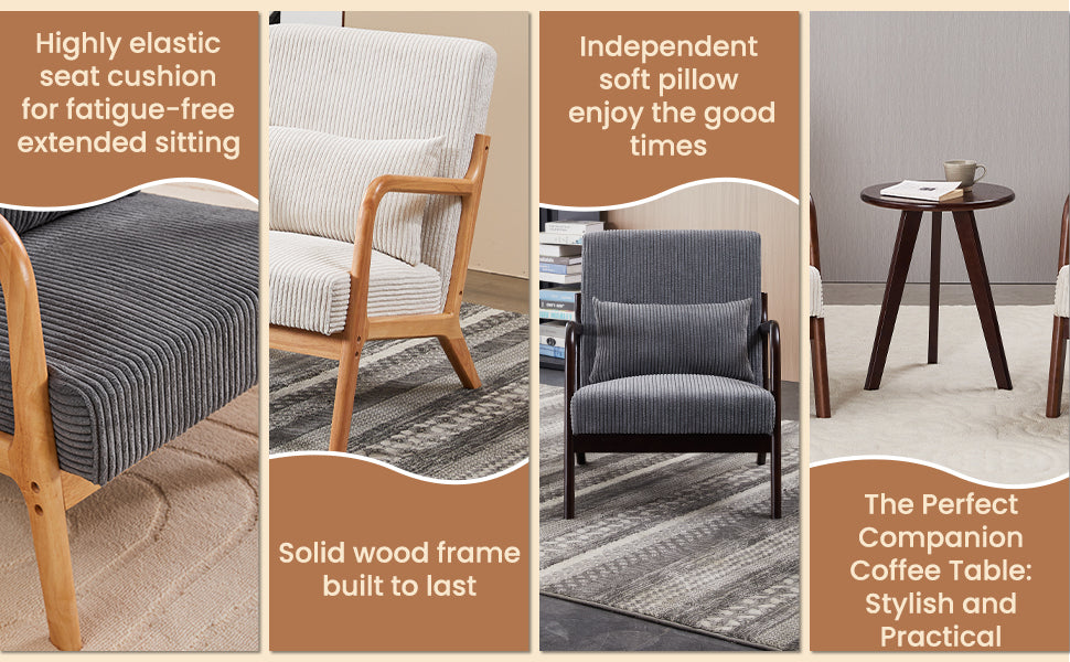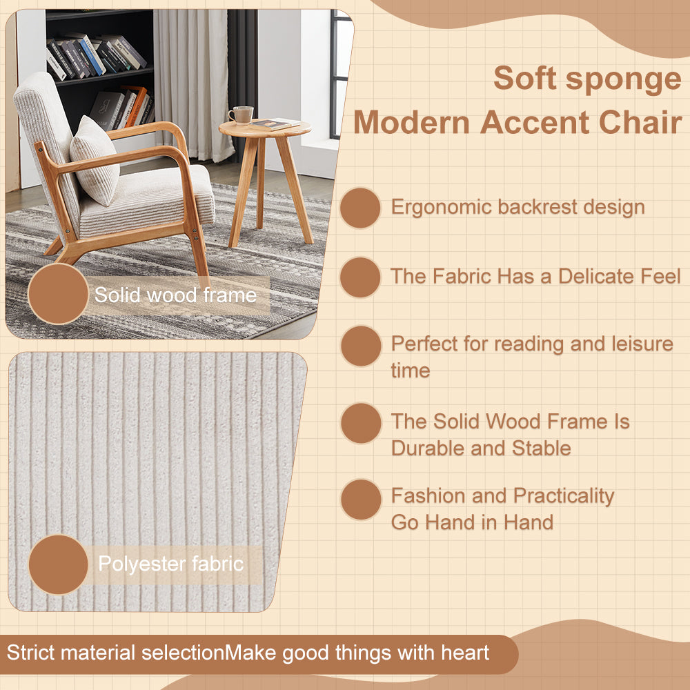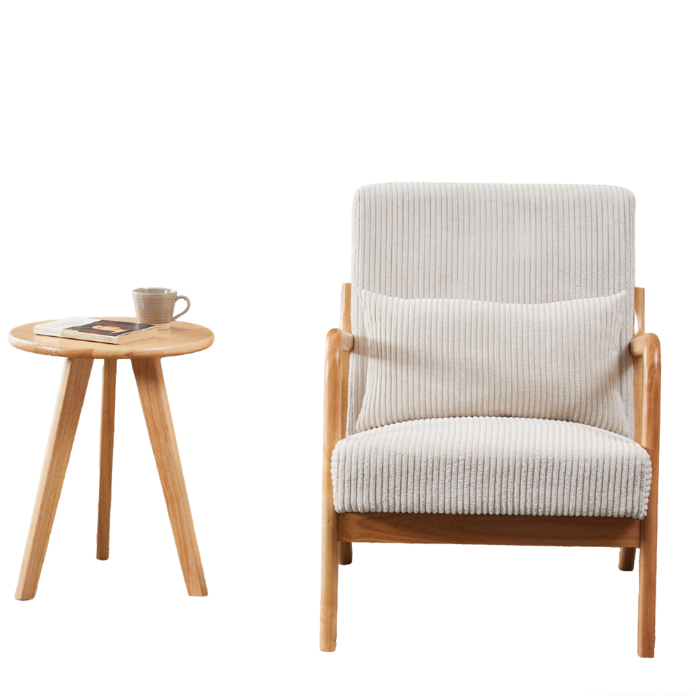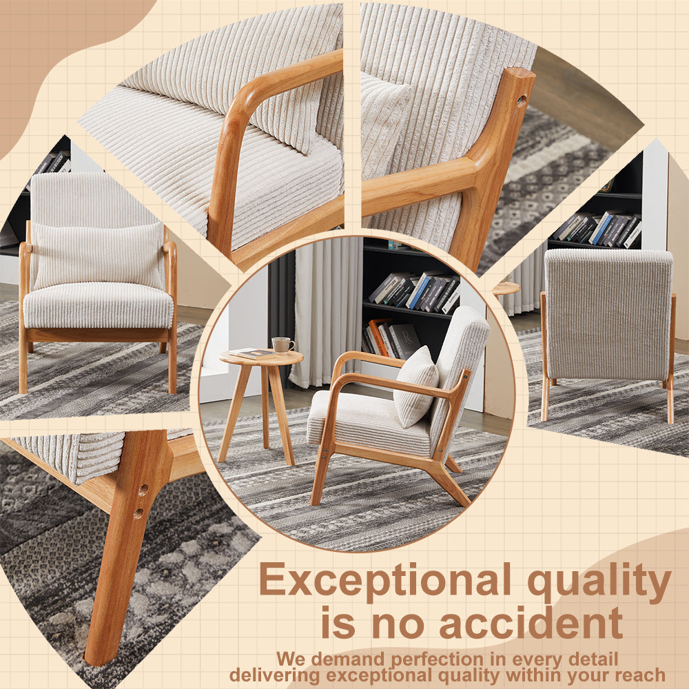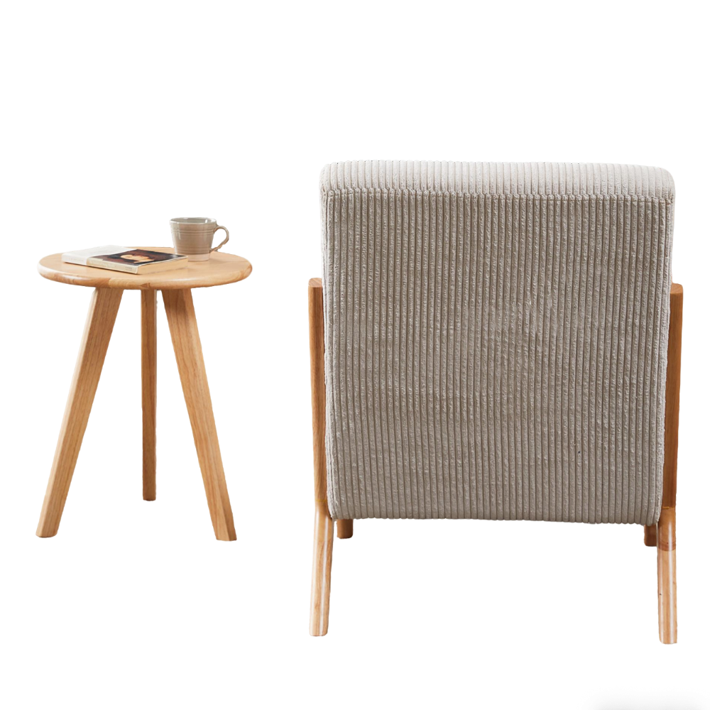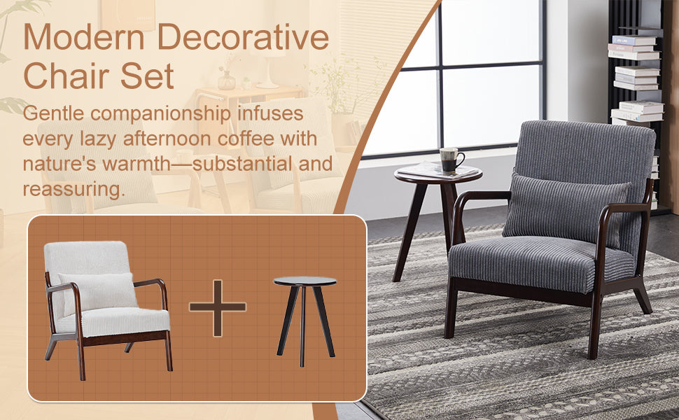 Mid-Century Modern Accent Chair & Coffee Table Set, Beige Lounge Chair with Natural Wood Table, Vintage Luxury Living Room Furniture