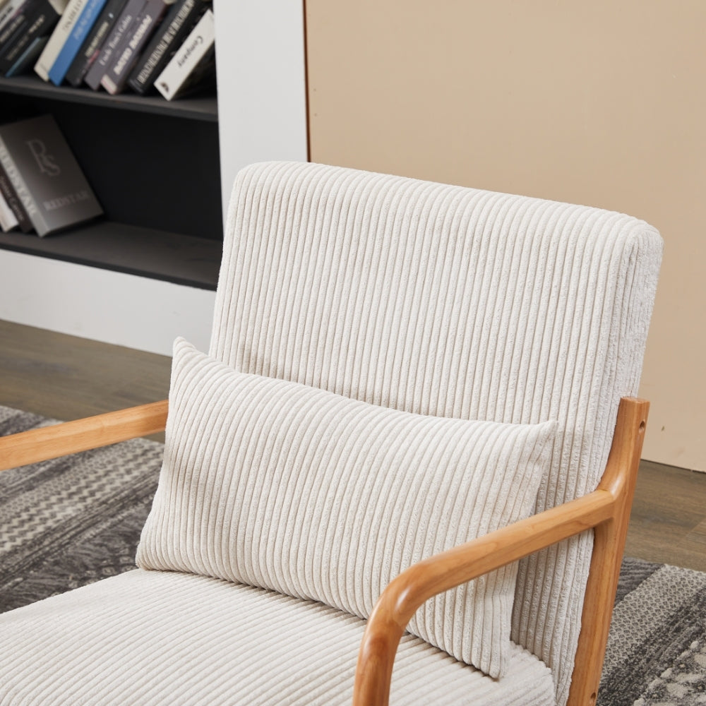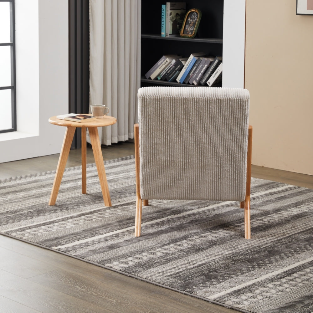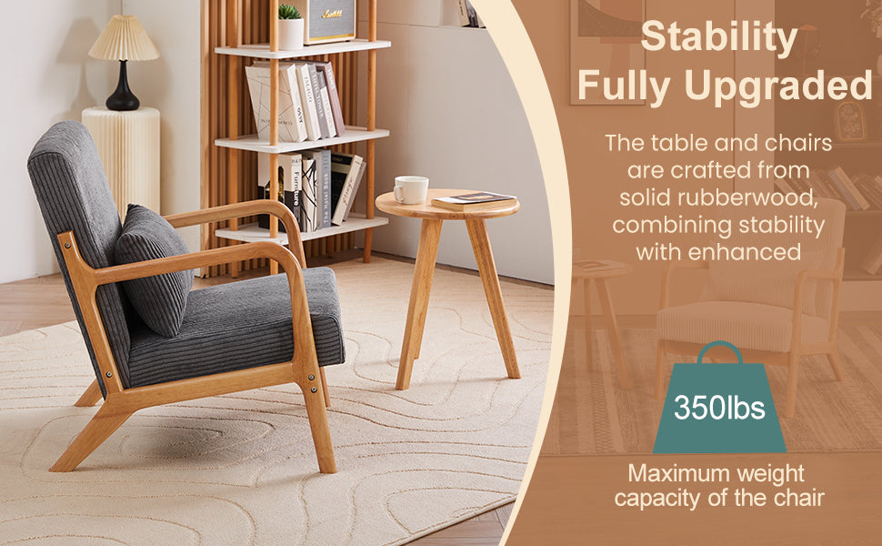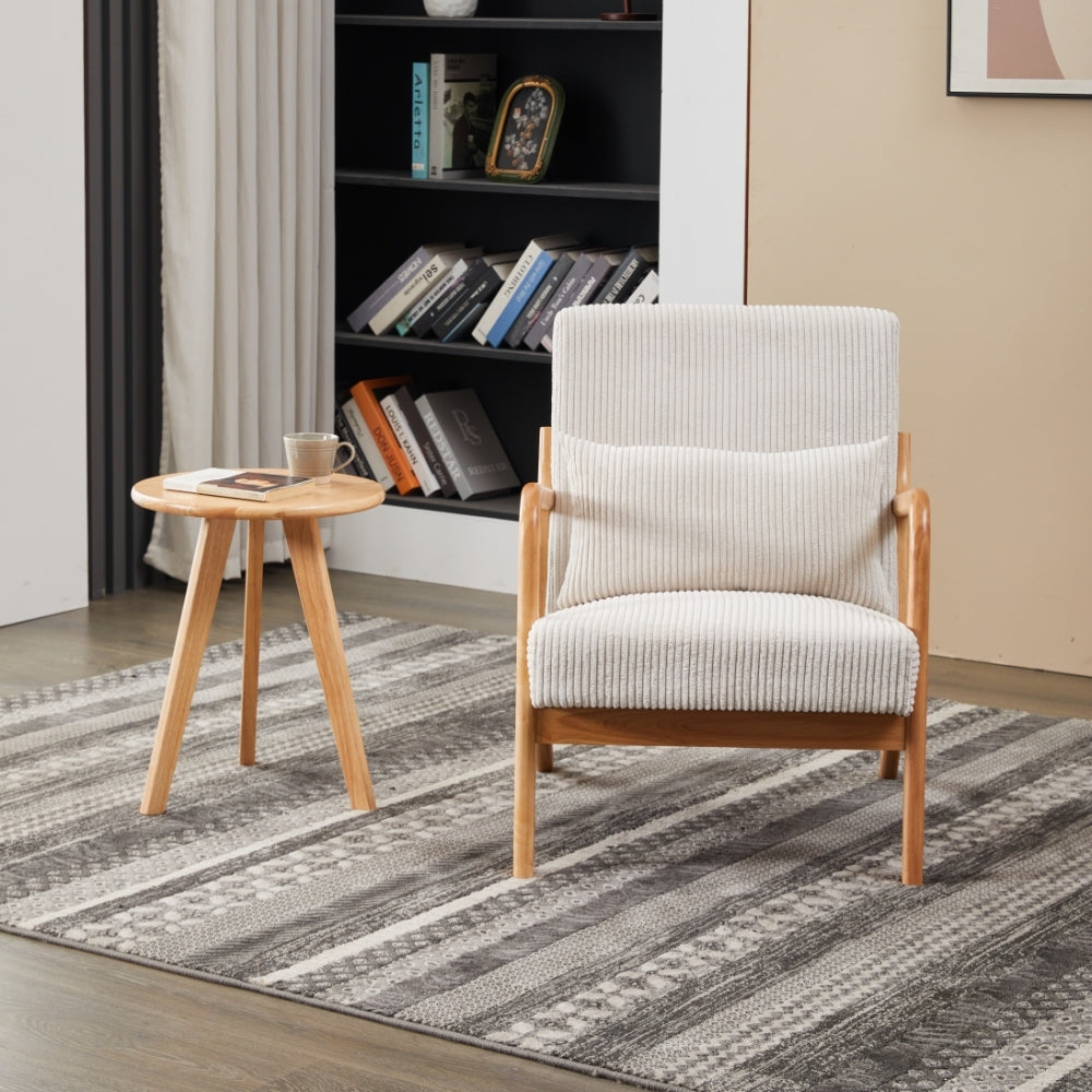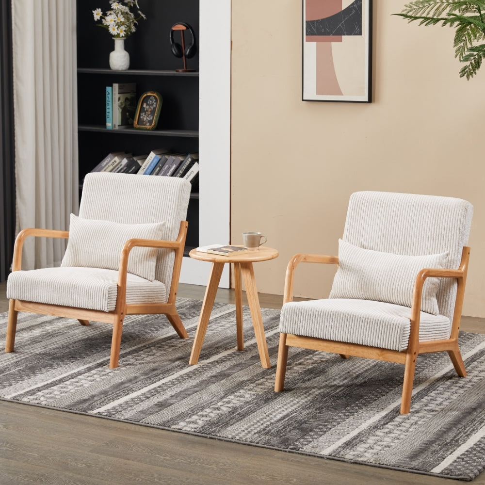 Mid-Century Modern Accent Chair & Coffee Table Set, Beige Lounge Chair with Natural Wood Table, Vintage Luxury Living Room Furniture