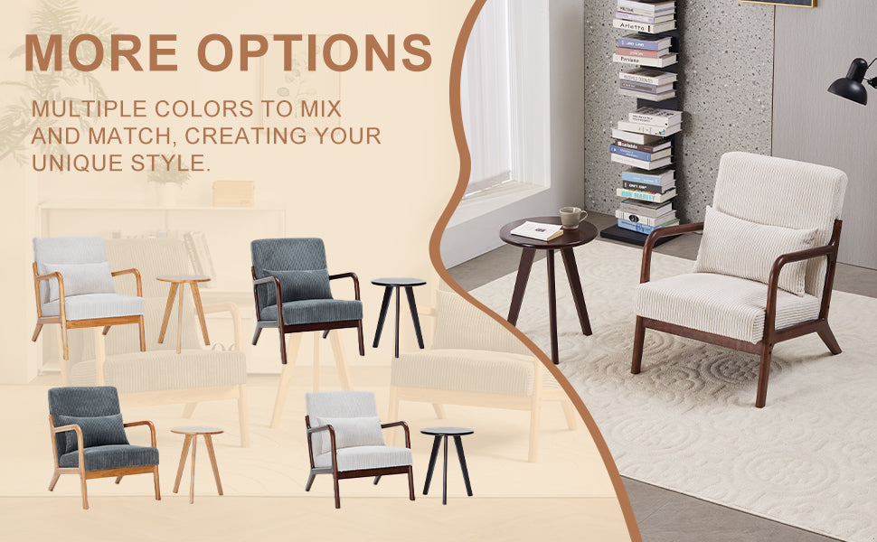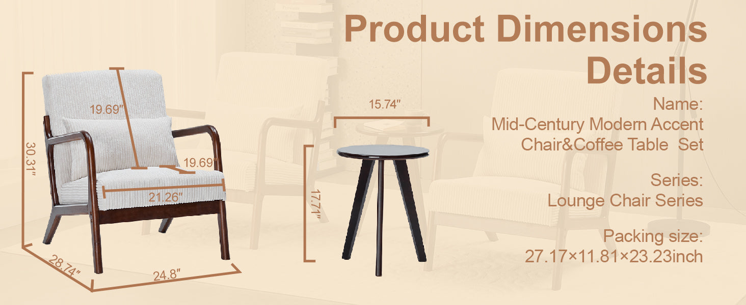 Transform your space with this Mid-Century Modern Accent Chair and Coffee Table Set, featuring a vintage luxury design that blends comfort and elegance. The beige leisure chair offers soft cushioning and ergonomic support, while the natural wood coffee table adds timeless charm. Perfect for living rooms, bedrooms, and relaxation areas, this stylish set enhances any home décor with its warm tones and minimalist appeal. Ideal for modern, retro, or Scandinavian interiors.