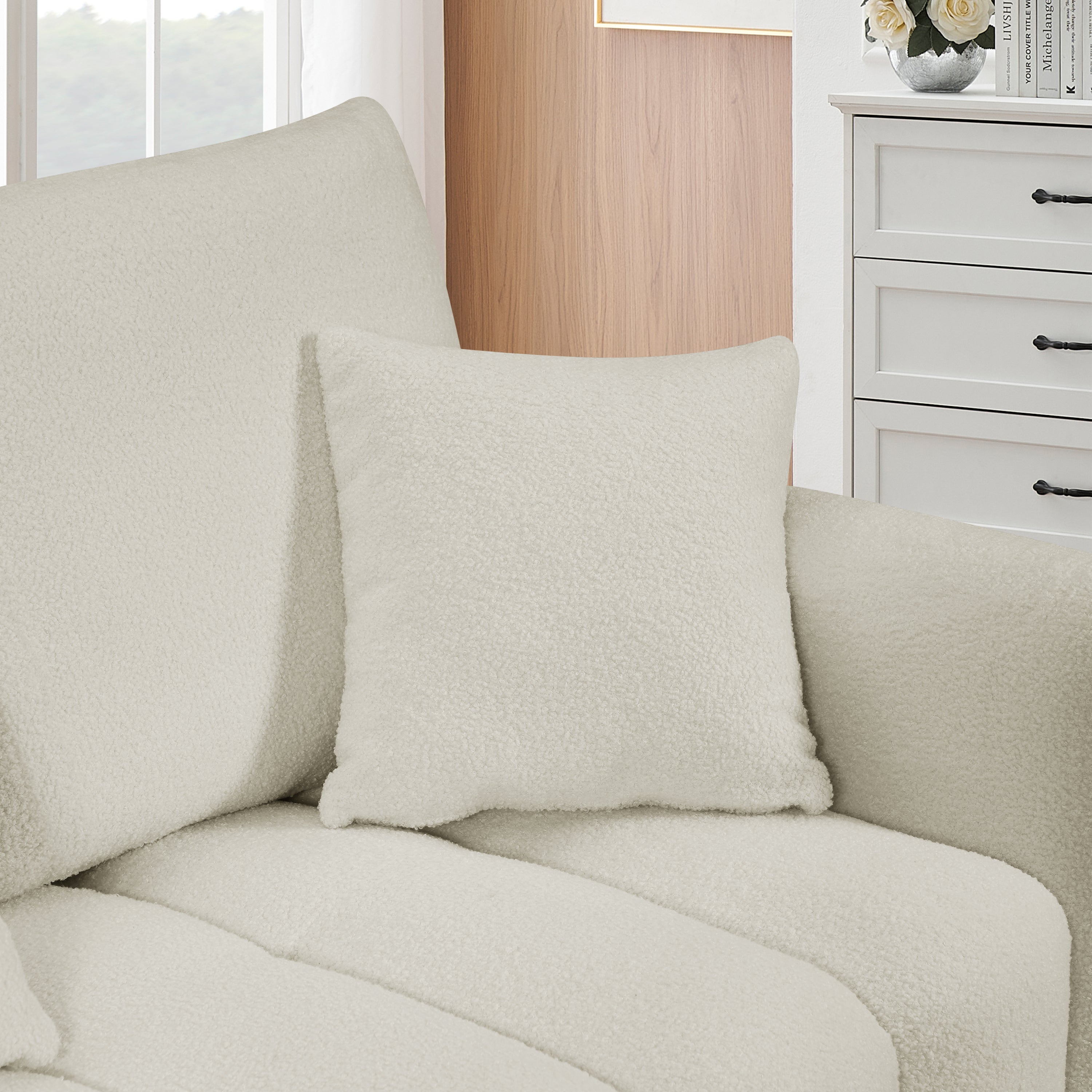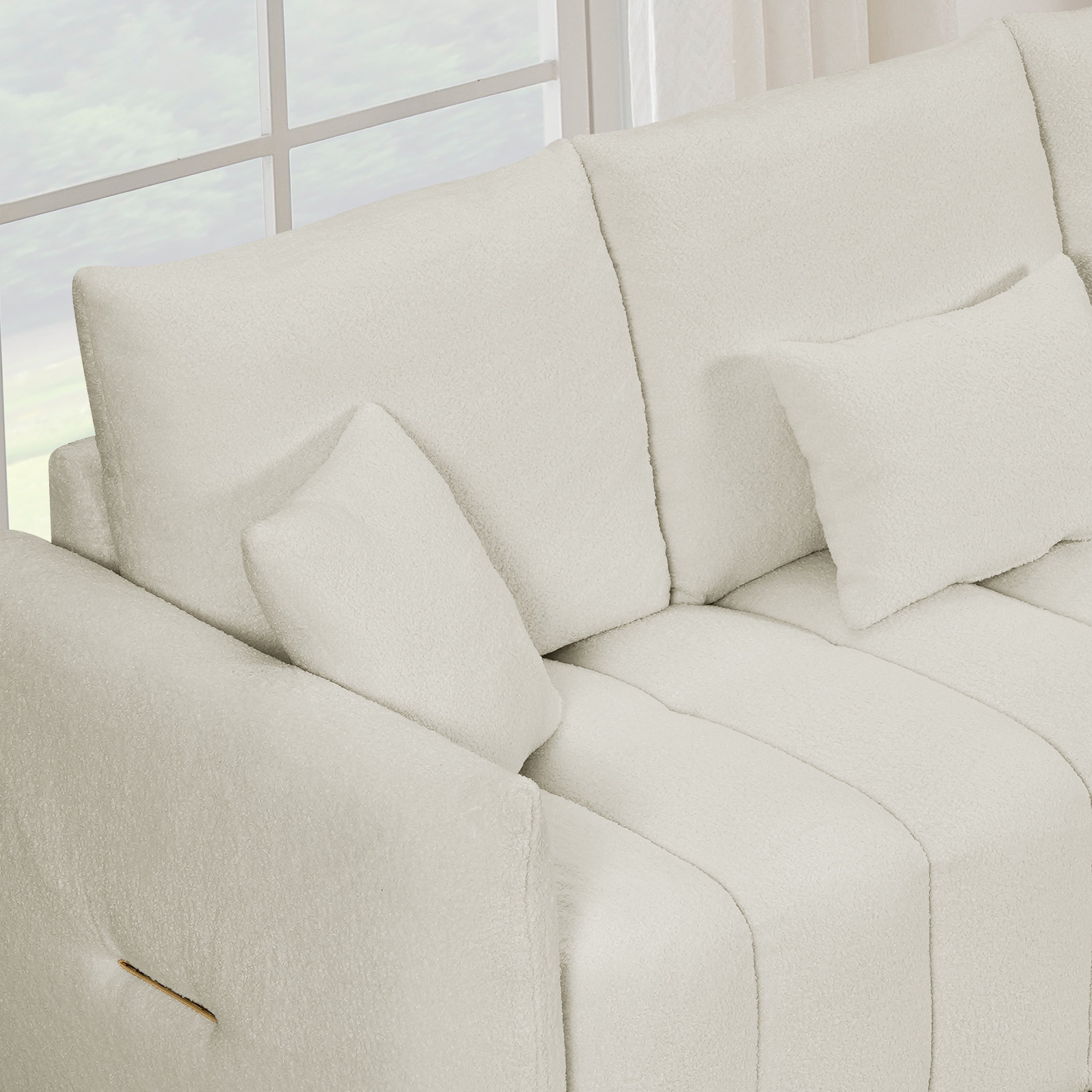 80.7" Premium Teddy Fabric Sofa with 3 Back Pillows & Cushions – Solid Wood Frame, 3-Seat Sofa with Oversized Upholstered Chair for Living Room, Bedroom, Apartment & Office