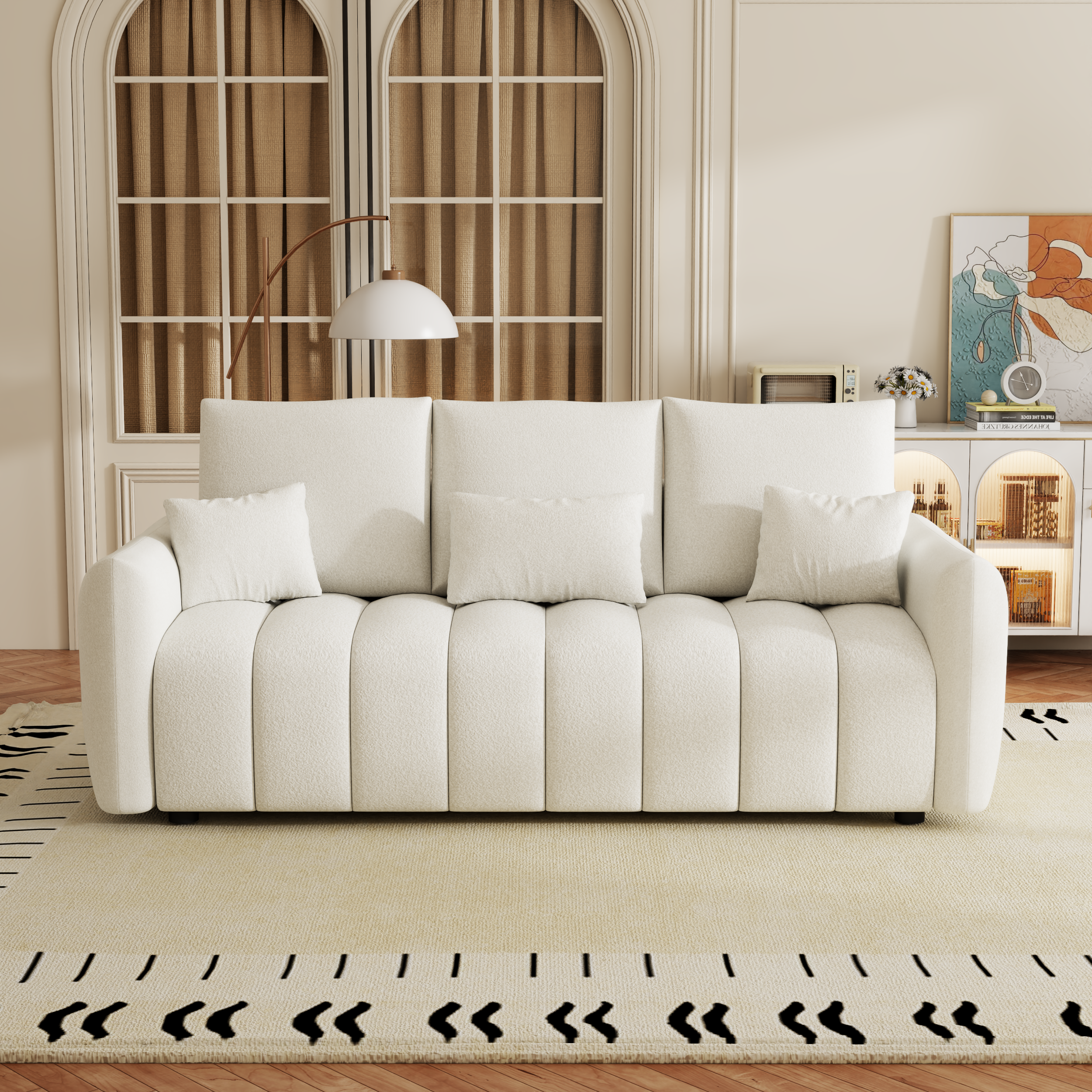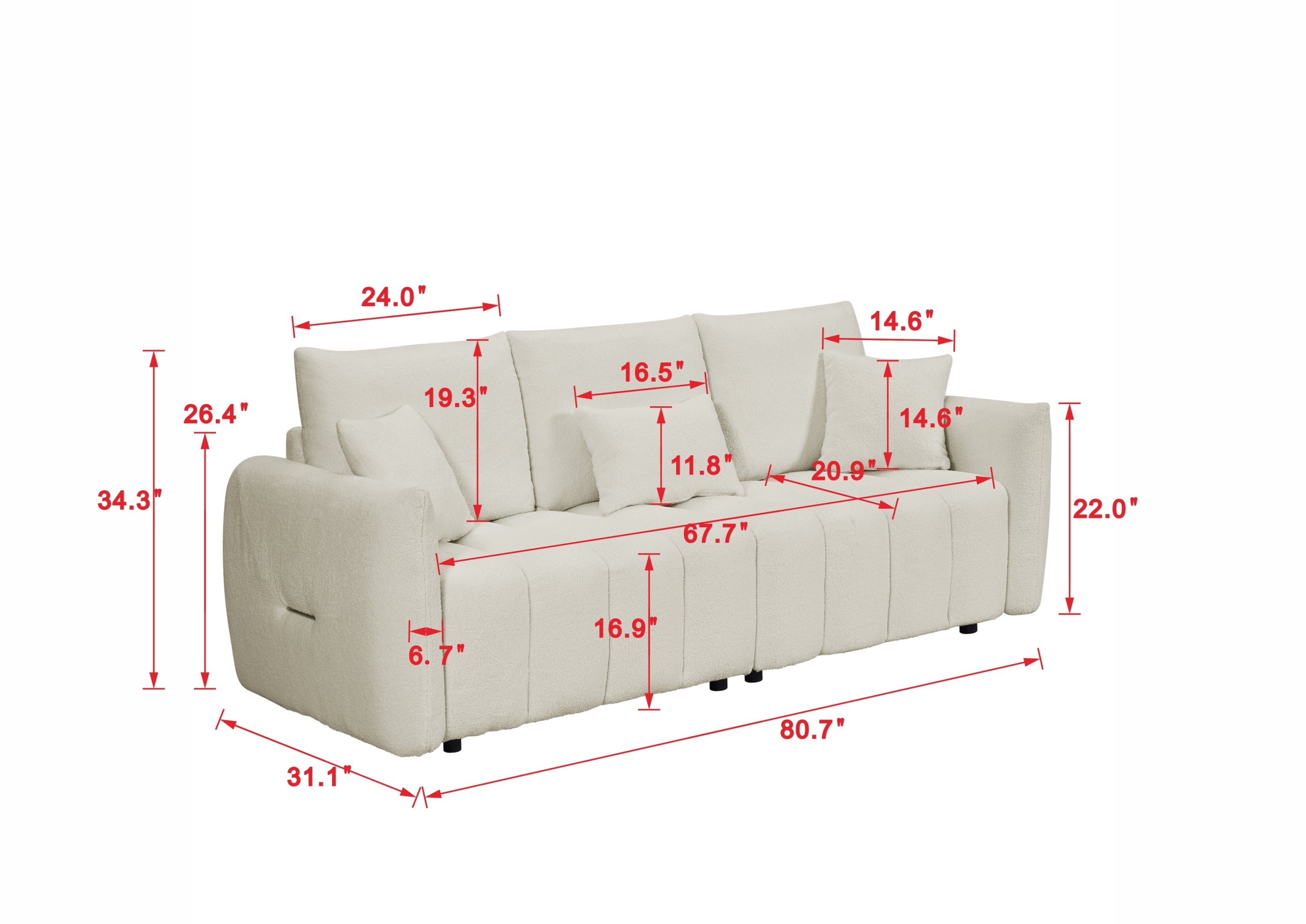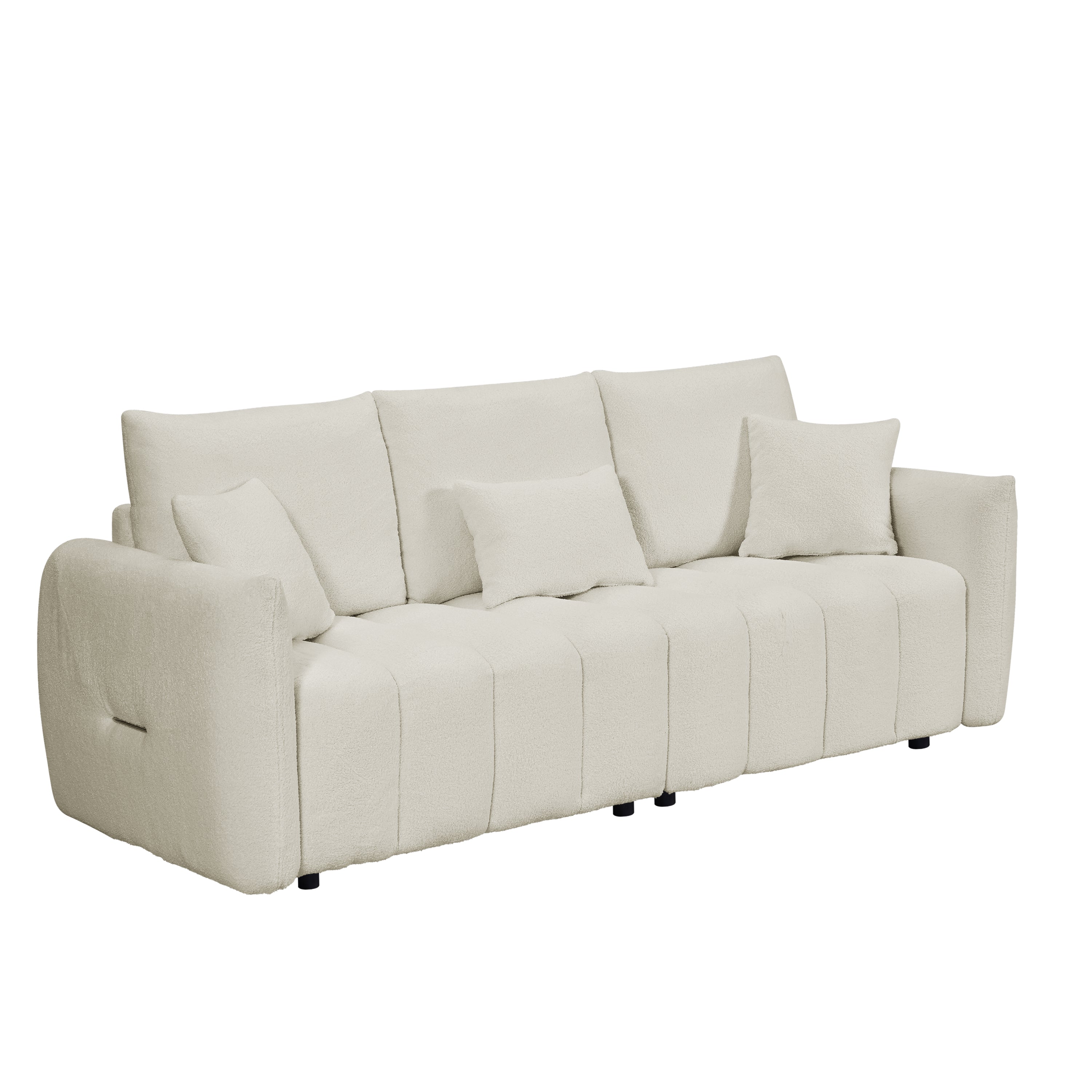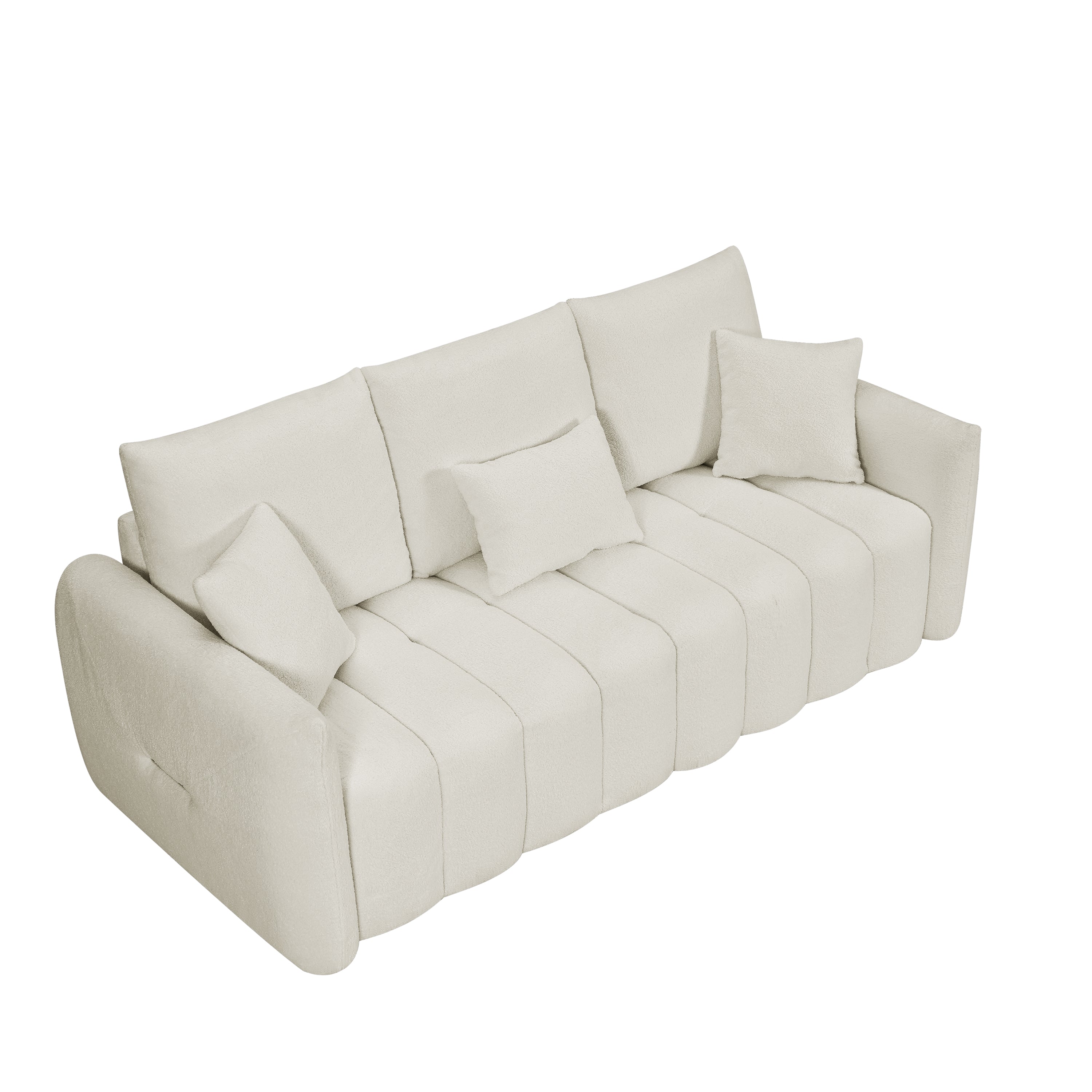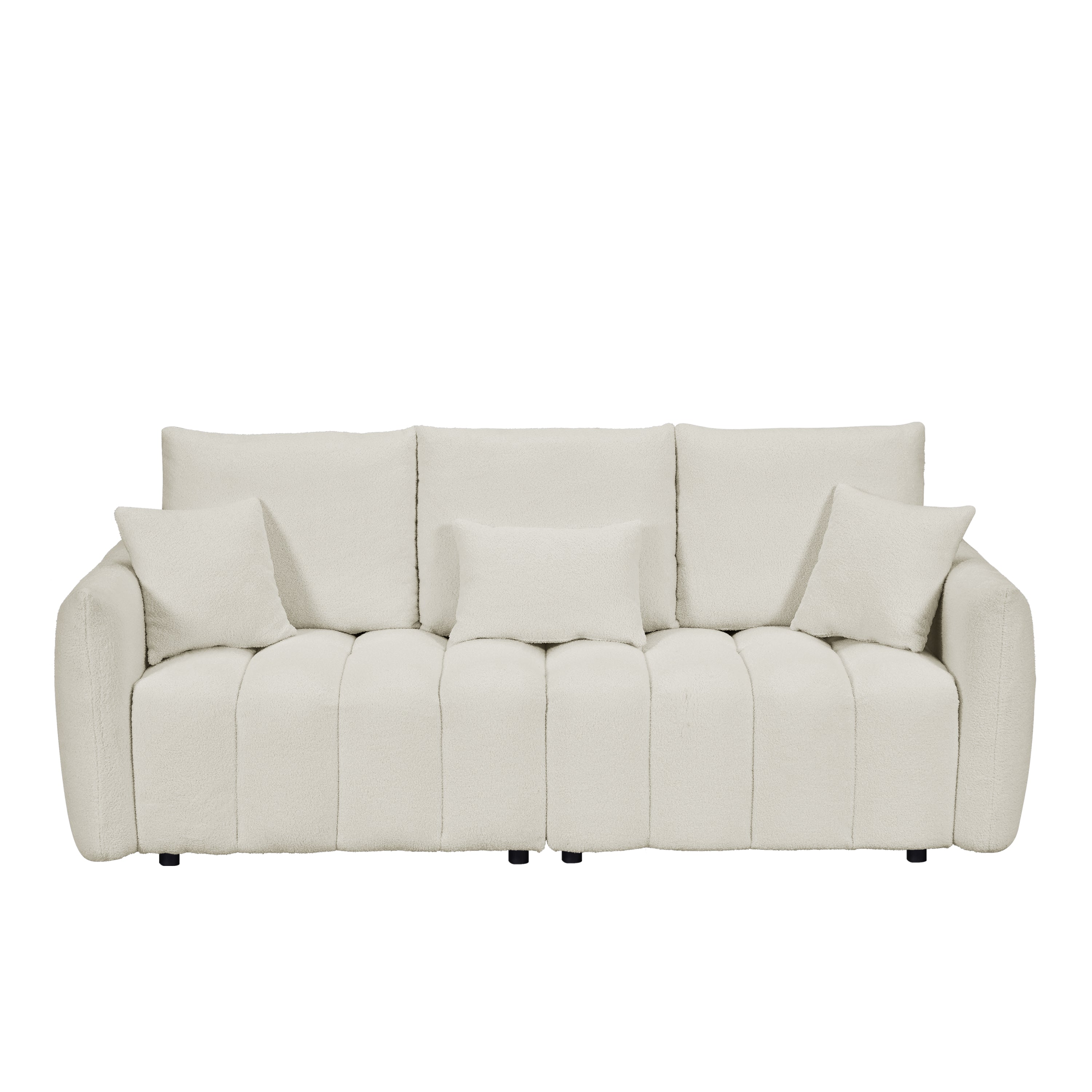 Transform your living room, bedroom, apartment, or office with the 80.7" Premium Teddy Fabric Sofa, designed to provide both style and comfort. Featuring a sturdy solid wood frame, this 3-seat sofa is complemented by three back pillows and three back cushions for added support and relaxation. The soft, plush teddy fabric enhances the cozy feel, while the oversized upholstered chair offers ample seating space for family and guests. Whether you're unwinding after a long day or entertaining, this sofa adds a touch of elegance and comfort to any space. Perfect for modern interiors, it blends functionality with luxurious design, making it an ideal addition to your home.