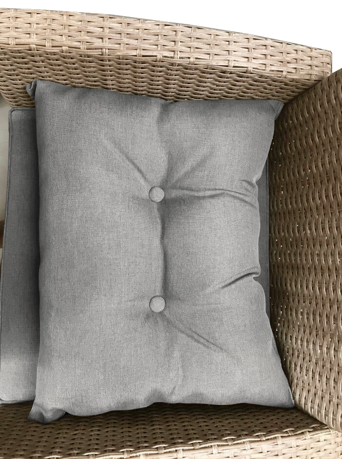 - High density foam cushions are upholstered in velvety soft fabric allowing you to get comfortable outside with button tufting on the back cushions for a polished look