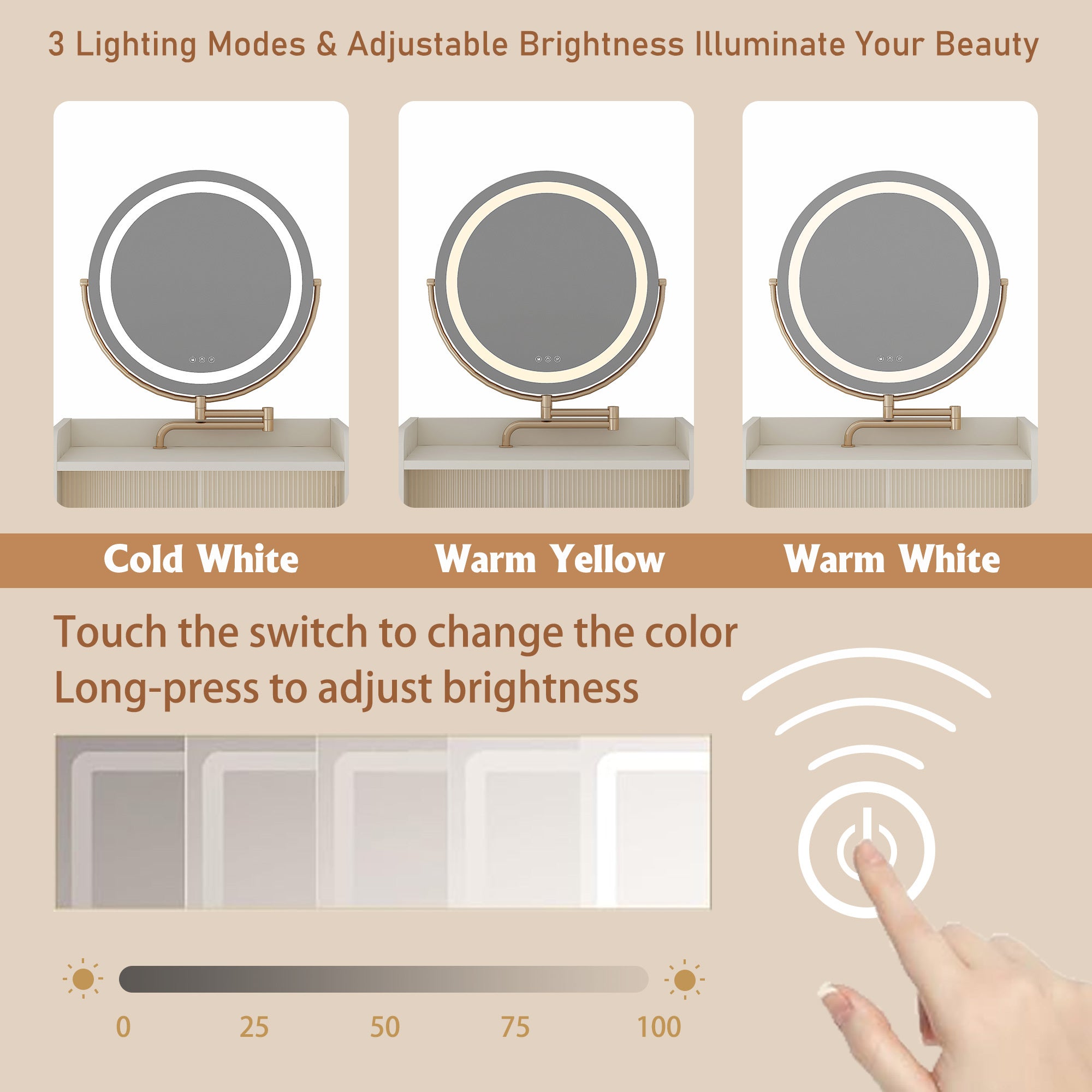 - 【Vanity with Charging Station】 allows you to charge your electronic products in time. You can also sit in front of this lighted vanity and comb your hair easily with a curling iron or hair dryer.