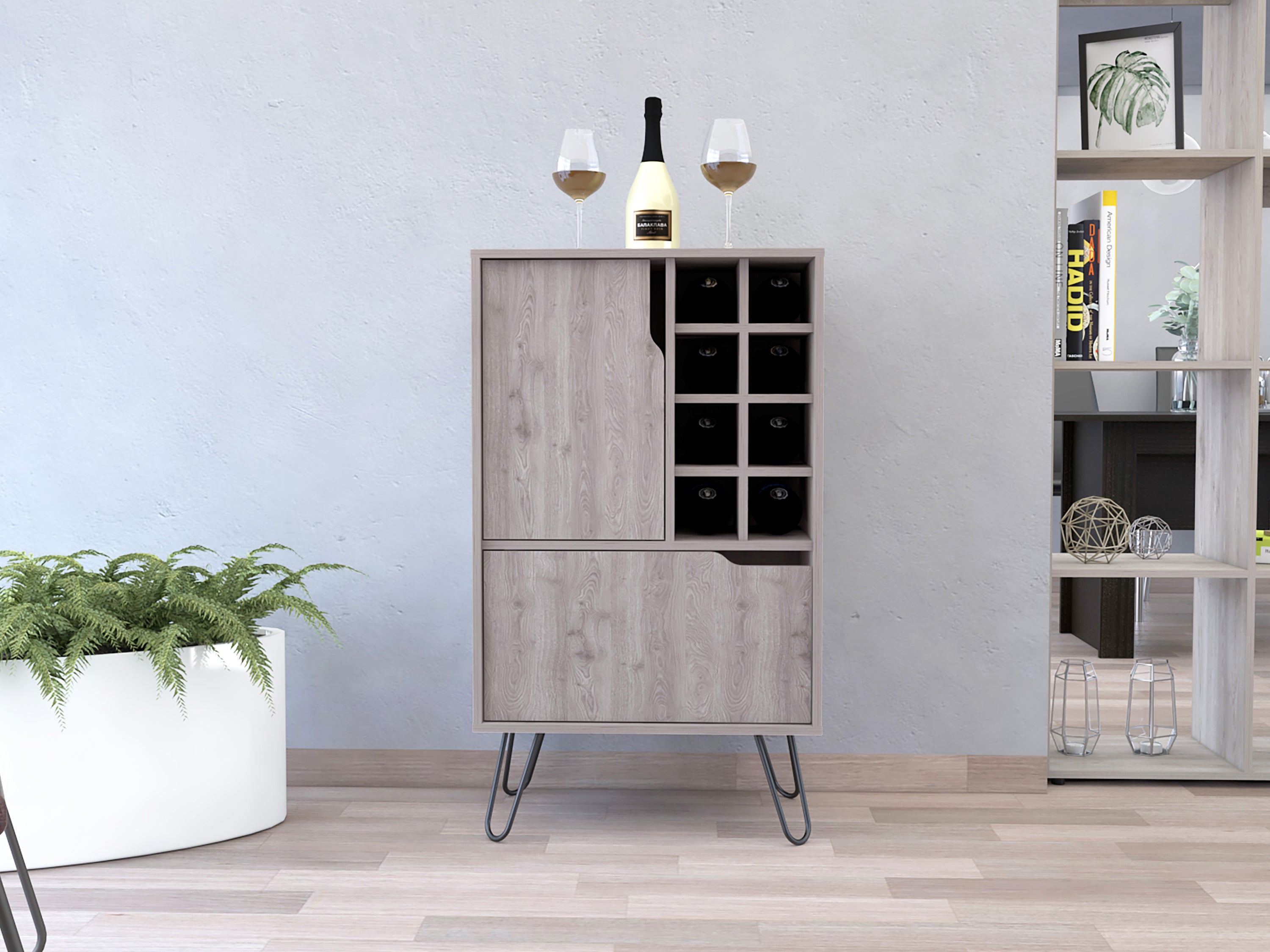 Sheffield L Bar C, Two Cabinet, Hairpin Legs, Eight Cubbies For liquor