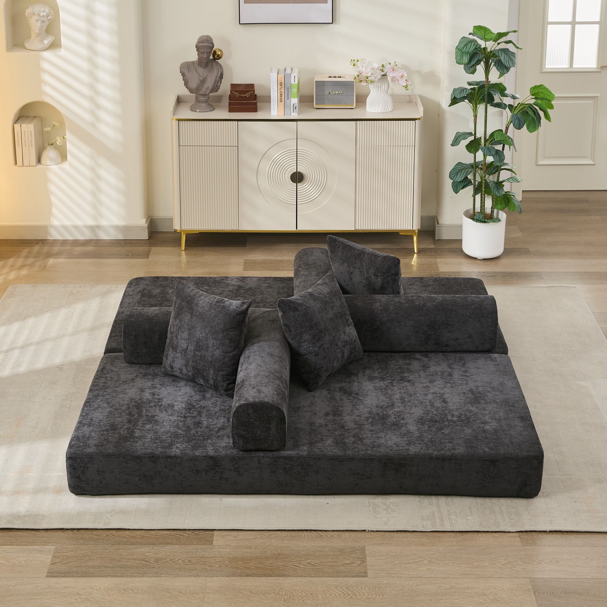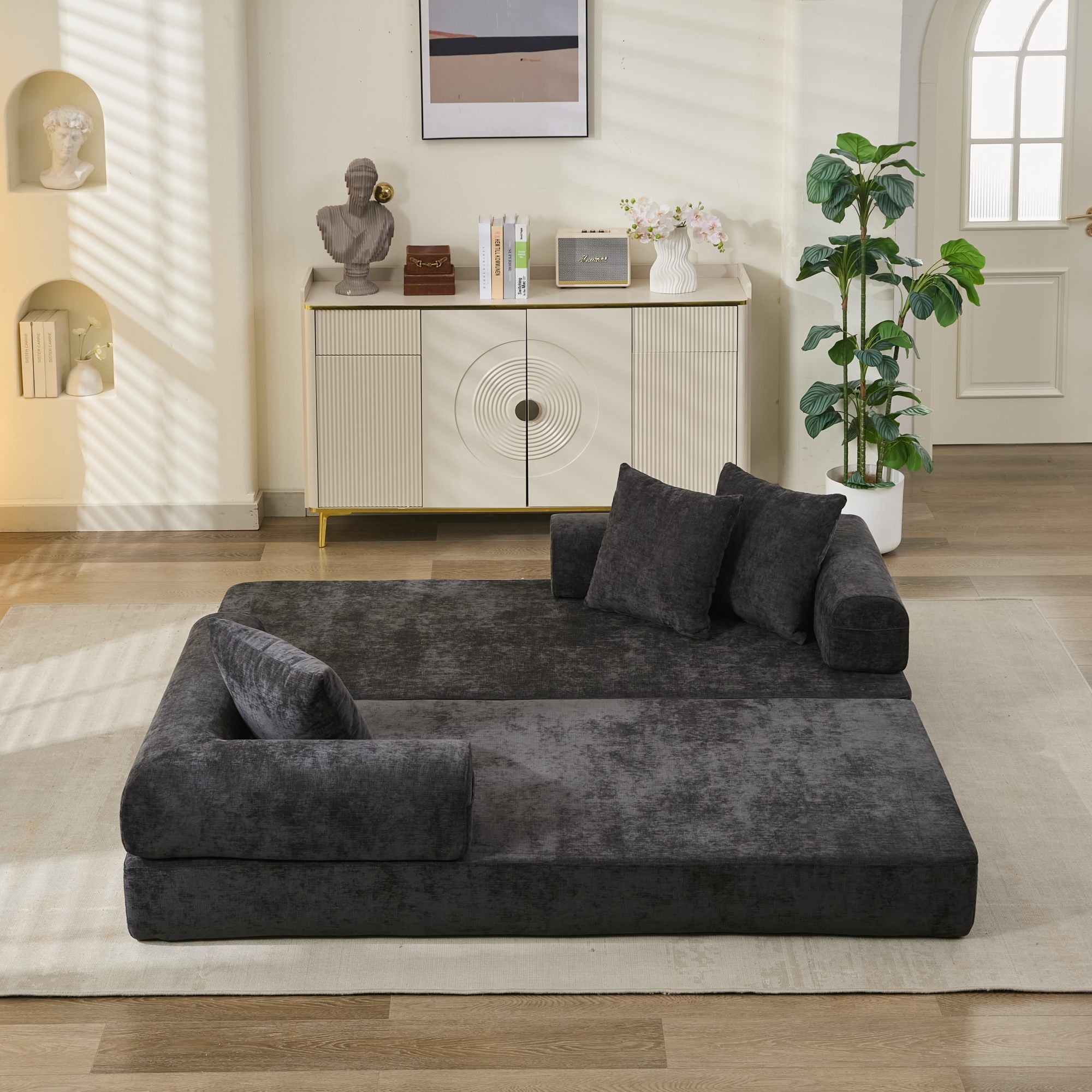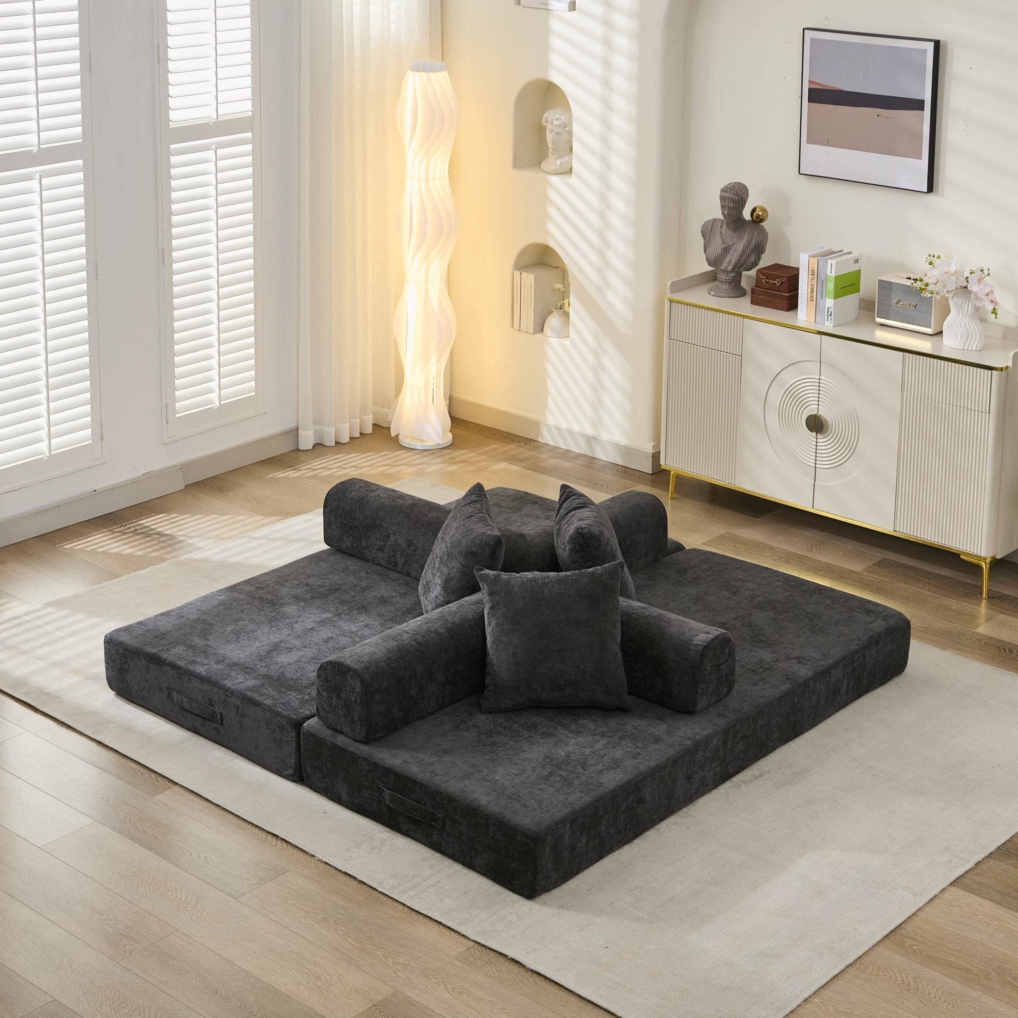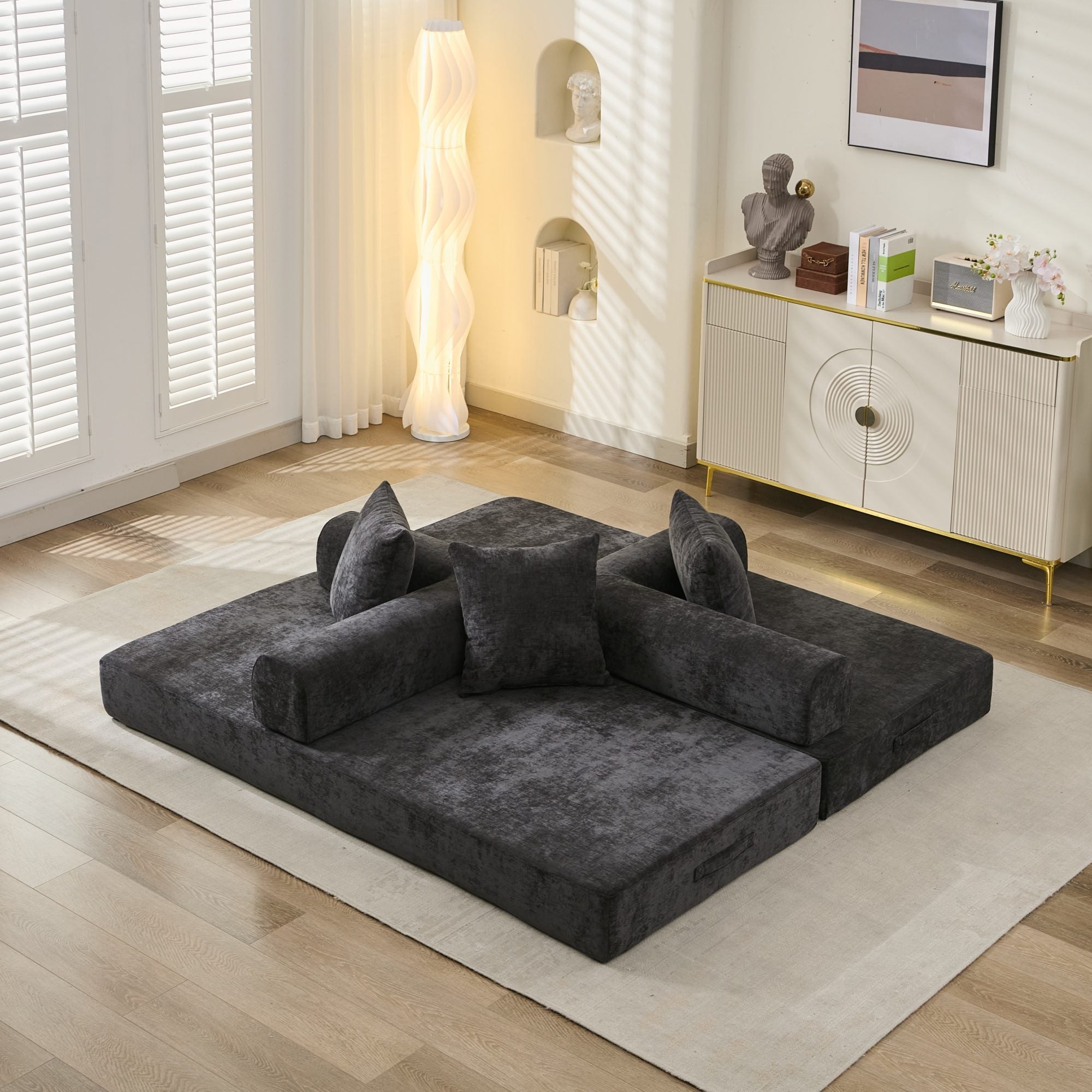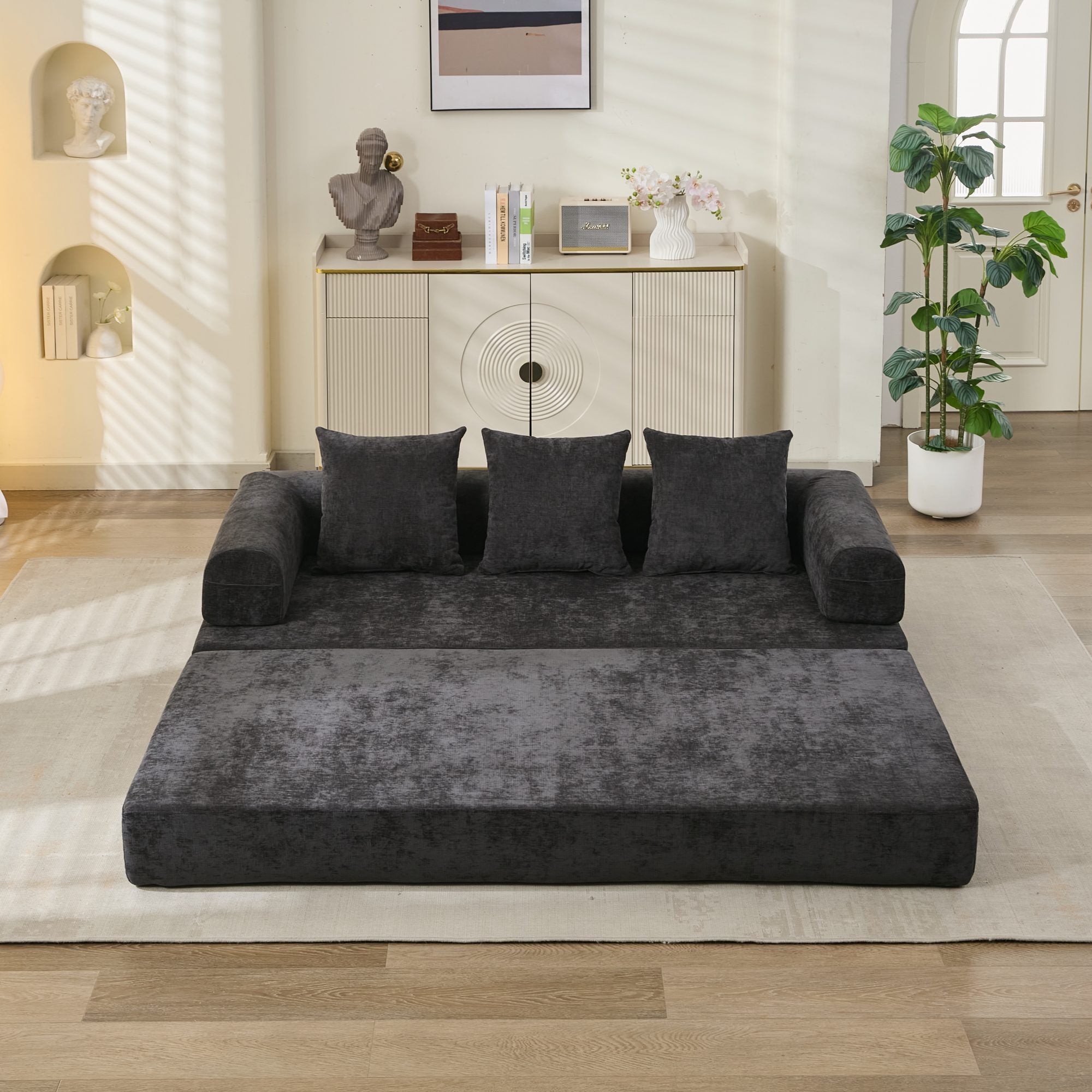 Product Description: Maximize your space with our Comfy Convertible Folding Mattress Couch in soft black chenille. This versatile floor sofa bed easily transforms from a cozy lounge to a comfortable mattress, perfect for guests or relaxation. Featuring a supportive armrest, it's an ideal floor sofa lounge couch for your living room, bedroom, or studio, offering flexible comfort and modern style.